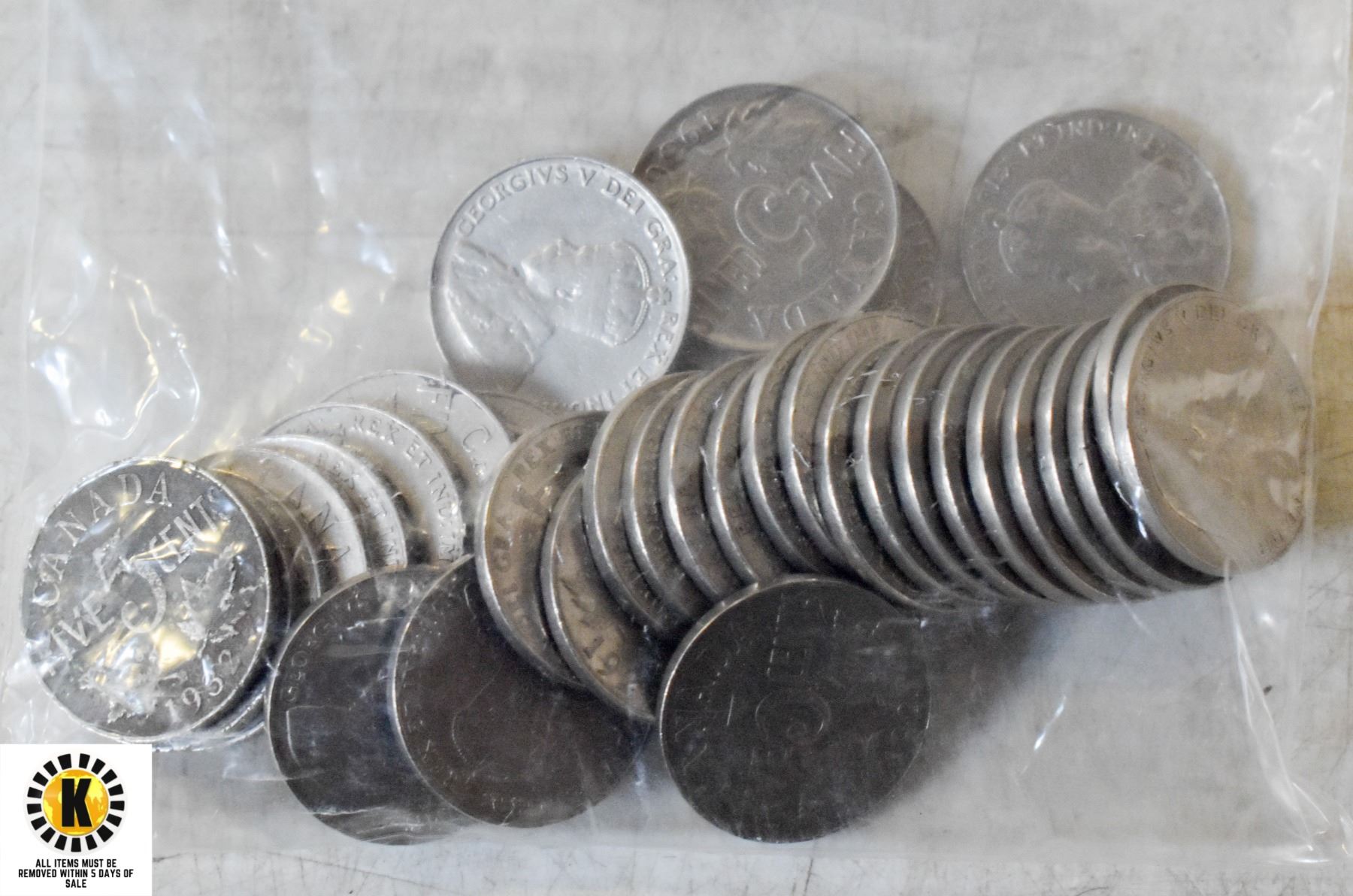 BAG WITH OLD KING GEORGE V CANADA NICKELS