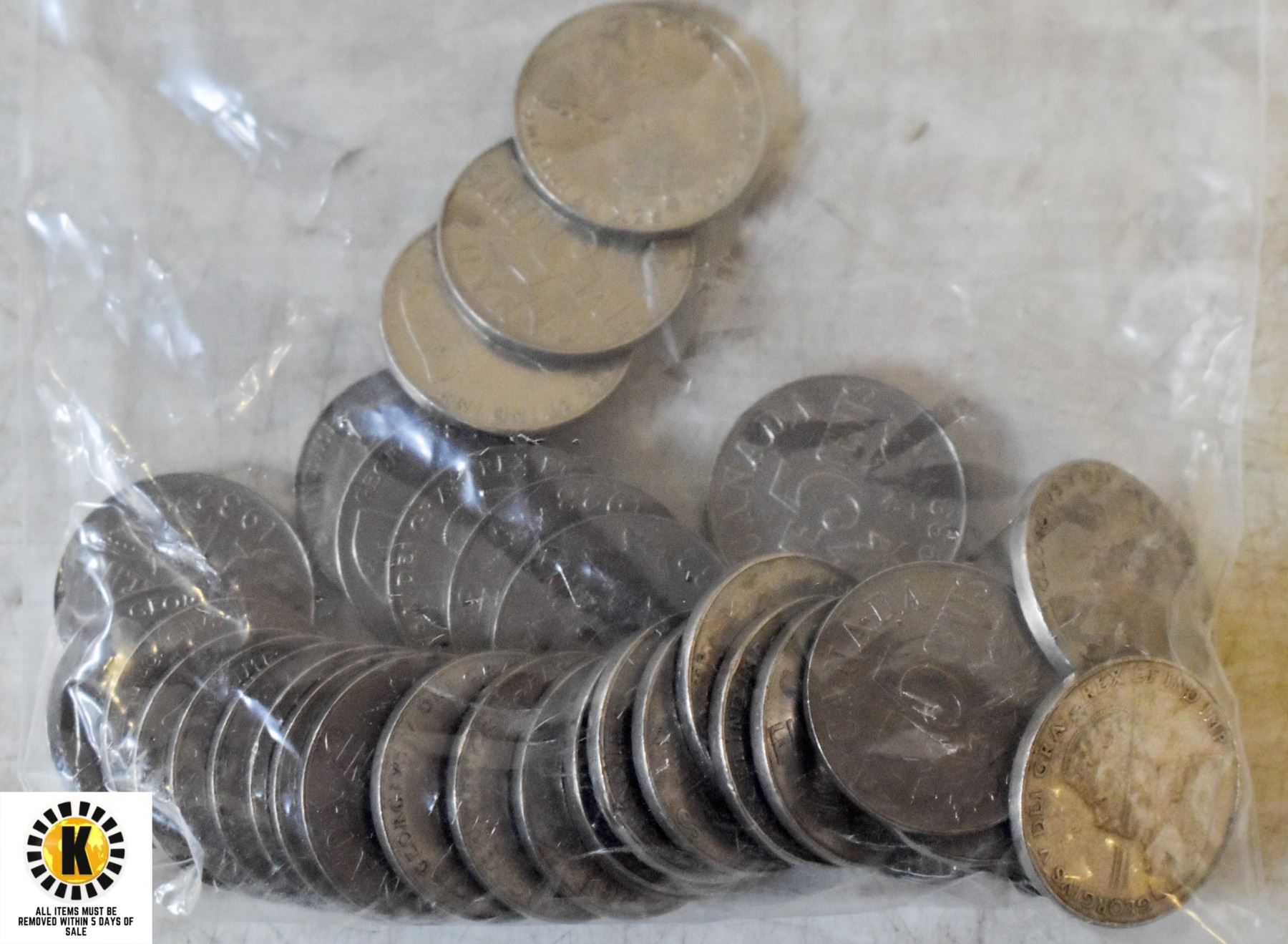 BAG WITH OLD KING GEORGE V CANADA NICKELS