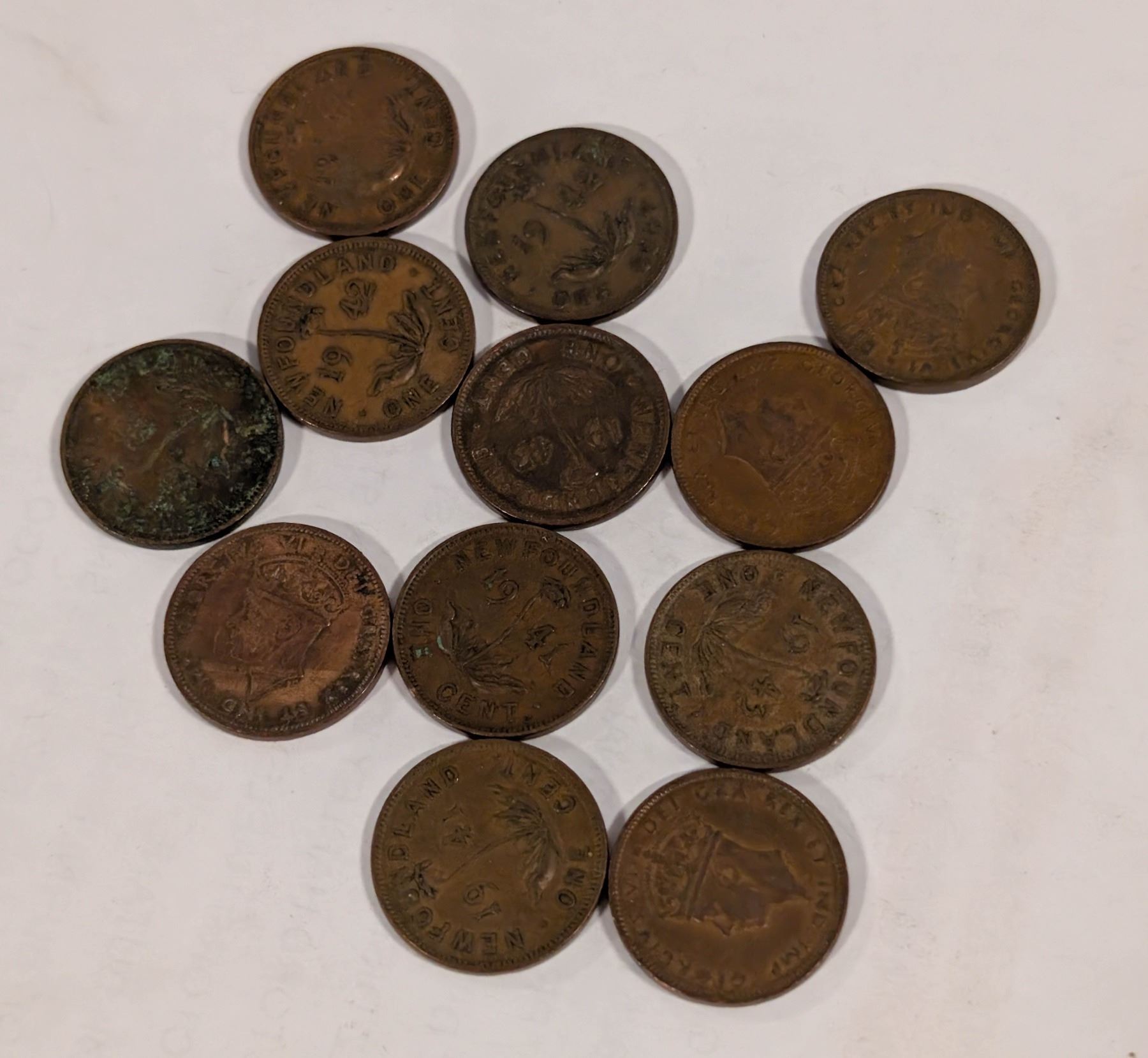 BAG WITH OLD NEWFOUNDLAND 1 CENT COINS
