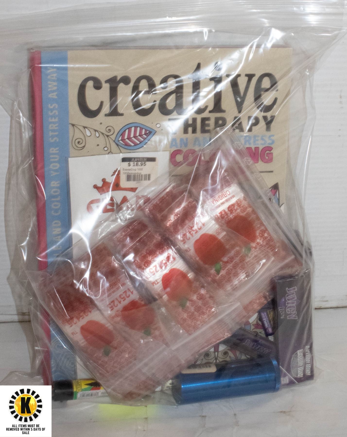 BAG WITH SMOKERS SUPPLIES AND BOOK