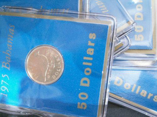 BAHAMAS 1975 $50 "Gold" coins BU .0804 each, lot of 9 gold coins. .7236 AGW