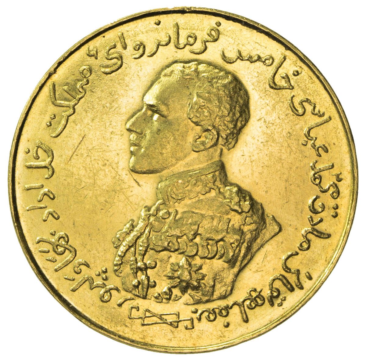 BAHAWALPUR: Sadiq Muhammad Khan V, 1907-1947, AV ashrafi (7.56g), Bahawalpur, AH1343, KM-M11, early strike, without any deterioration of the die surfaces, but a small die break visible to the lower left of reverse, Unc. The dies were produced by Spink for the Nawab.