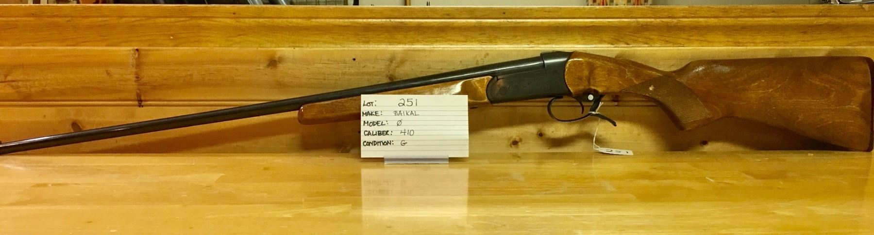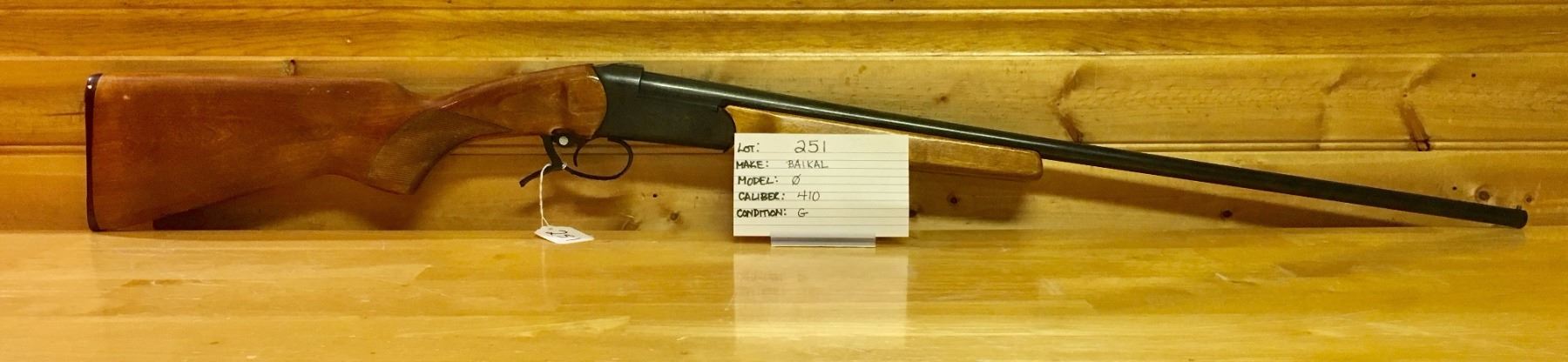 LOT: 251 MAKE: BAIKAL MODEL: NONE CALIBER: 410 CONDITION: G S/N: A00412