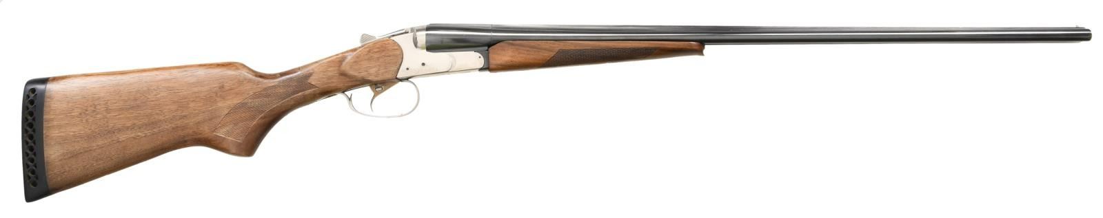 Cal. .410 GA, 2 1/2 or 3". S# 0580206R. Bbl 26 5/8". SPR210 manufactured by Baikal in Russia and imported by Spartan Gunworks (by Remington) in Sharpes, FL. The left side of the barrels bears the caliber designation, with the right bearing Spartan's importer information. Underside of receiver is marked "SPARTAN/ GUNWORKS/ BY REMINGTON" above a stamped "BAIKAL. RUSSIA". Stainless steel receiver featuring a tang safety switch and single selective trigger. Blued barrels featuring Full (left) and Improved Modified (right) chokes, a solid concave matte rib, as well as an aluminum bead front sight. Checkered wood buttstock with semi-beavertail checkered forend. Matching numbers are present on the receiver, barrels, and forend iron. CONDITION: barrels retain the vast majority of their original factory applied blue finish, exhibiting some minor spots with losses from cleaned oxidation, as well as some scattered spots of light surface oxidation. Receiver shows a few minor superficial handling marks, but is otherwise fine. Mirror bores. Wood furniture shows few light superficial marks from handling and storage. (23-2286/MLW). MODERN. $400-600.