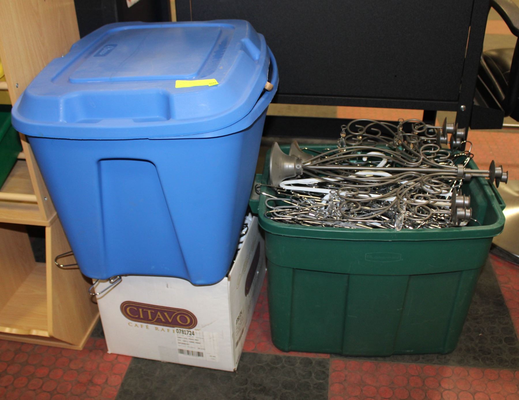 BAILIFF SEIZED: 2 BINS & 1 BOX OF HANGERS, CANDLE