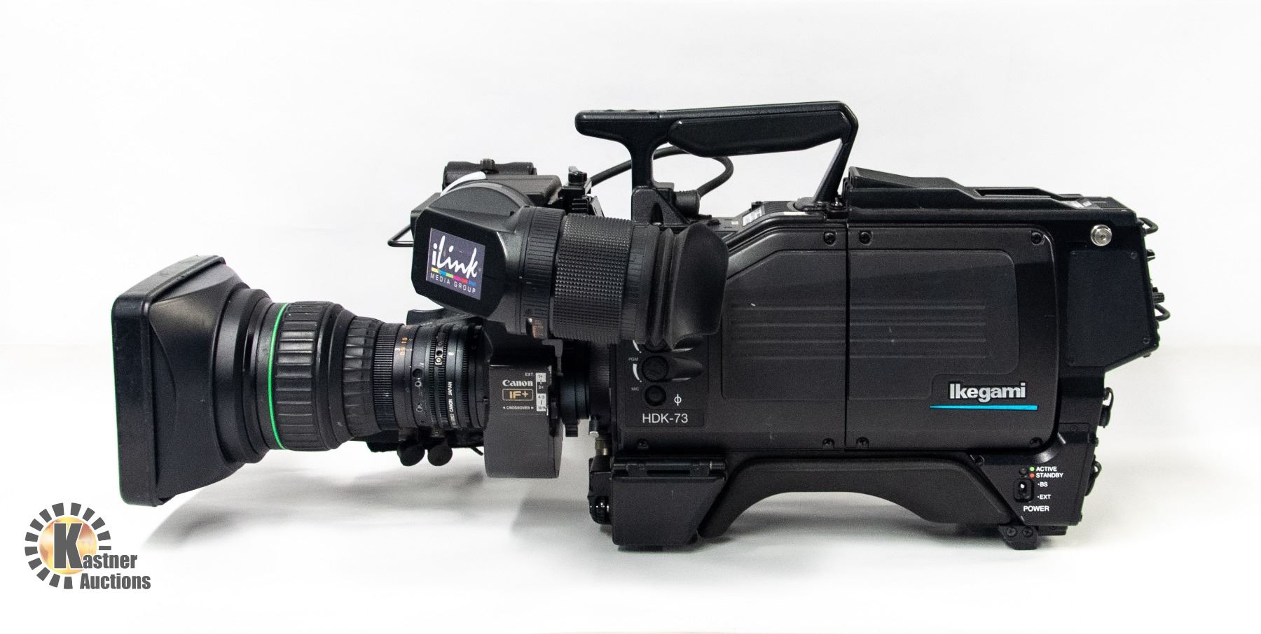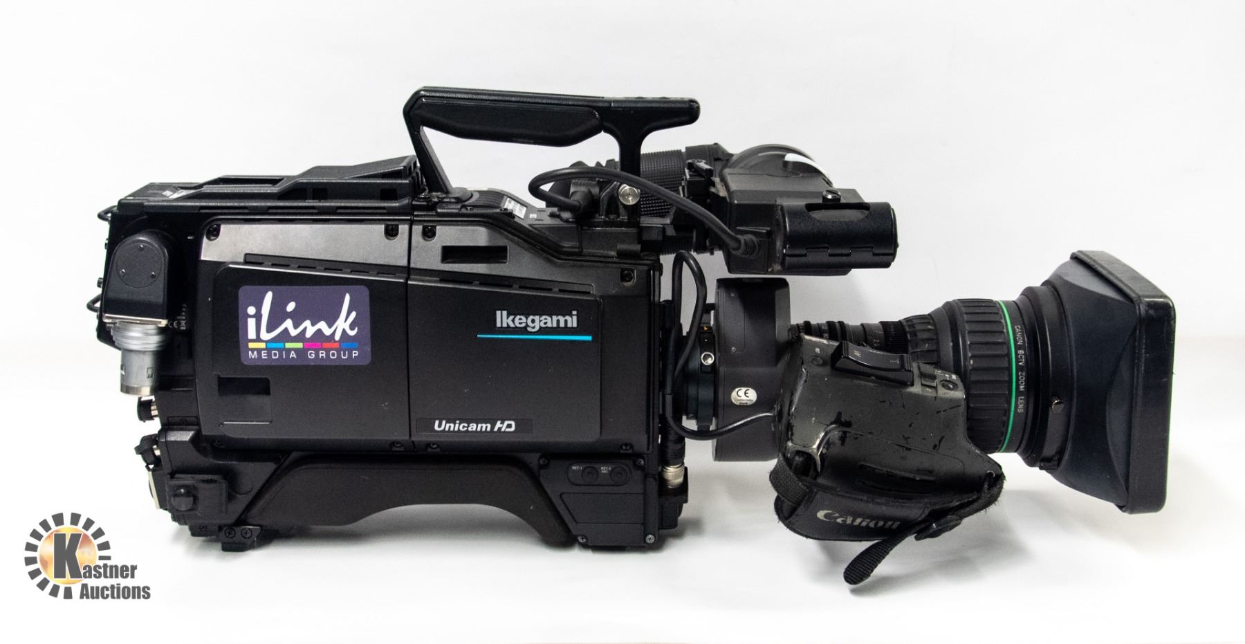 HDR READY, NEWLY DEVELOPED HIGH PERFORMANCE FULL HD 2/3 INCH CMOS SENSORS, NATIVE MULTI FORMAT, ADVANCED FULL DIGITAL DSP, LENS ABERRATION CORRECTION FUNCTION, TWO HD-SDI OUTPUTS FROM THE CAMERA HEAD, RET AND QTV CHANNELS, ADVANCED MATRIX FUNCTION, DOCKABLE CAMERA BODY, WITH CANON J20AX8B4 IAS SX12 TELEPHOTO ZOOM LENS FOR 2/3" BAYONET MOUNT CAMERAS, WITH 2X EXTENDER ADN INTERNAL FOCUS FOR PRECISE FOCUSING AND SHARP FOCUS, TOTAL ZOOM RANGE IS 20X. WITH IKEGAMI MODEL DTA-55 TRIAX TRANSMISSION SYSTEM.