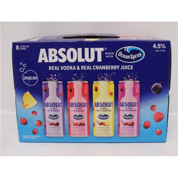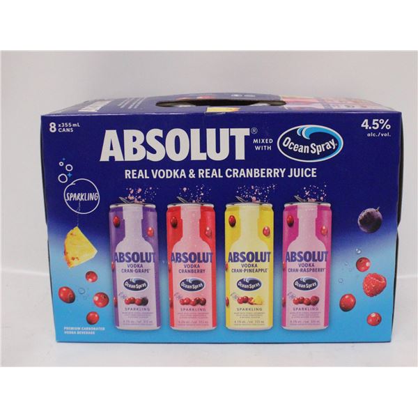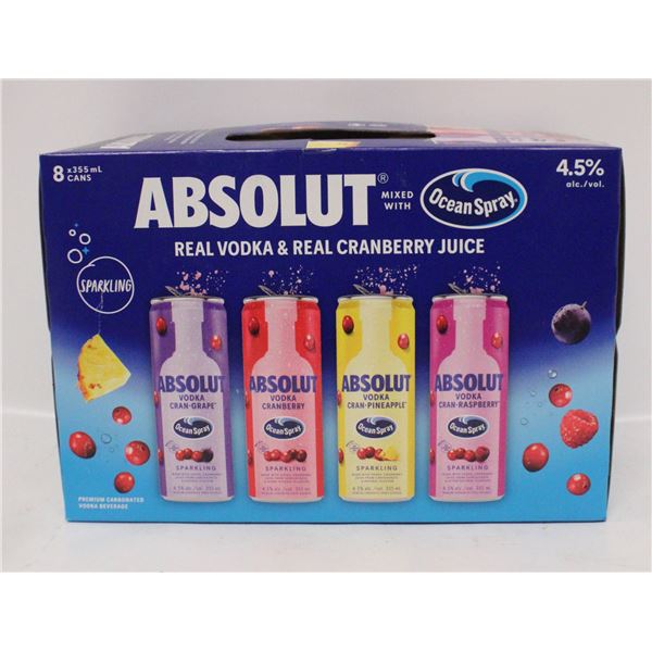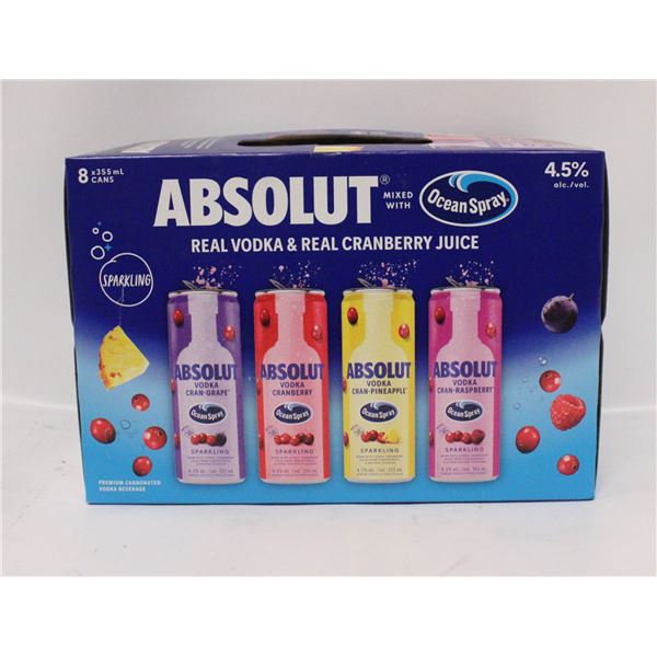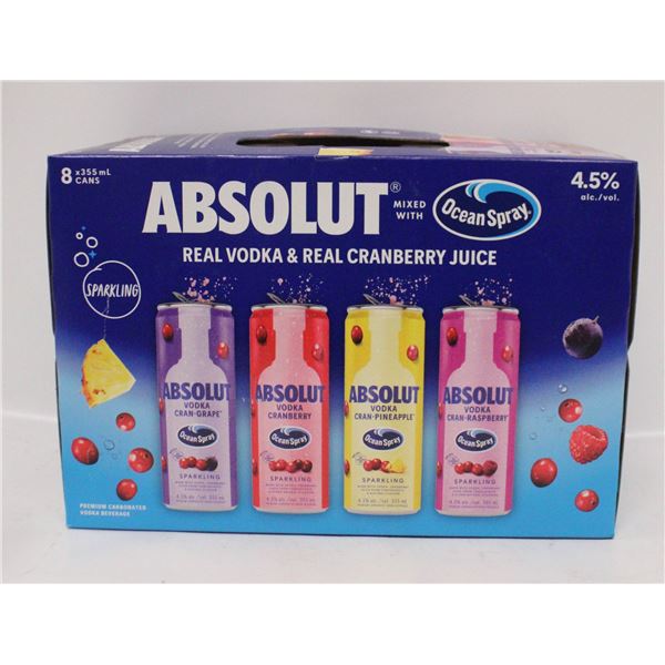 8 PACK ABSOLUT VODKA MIXED WITH OCEAN SPRAY 4.5%