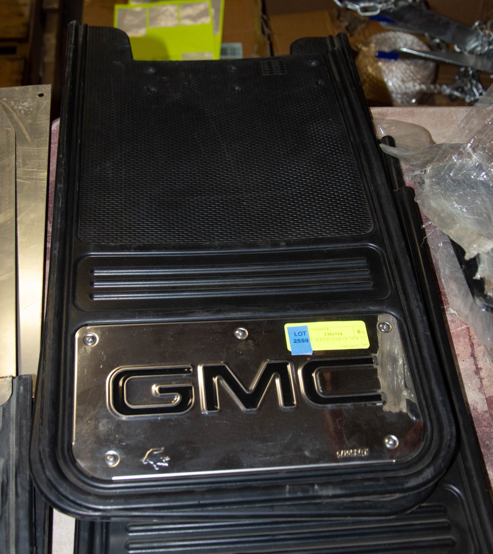 THICK RUBBER GATORBACK GMC MUD FLAPS *ALL BAILIFF SEIZED ITEMS ARE SOLD AS IS* **ALL ITEMS MUST BE REMOVED BY 5PM SATURDAY, FEBRUARY 1ST 2025. ALL REMAINING ITEMS WILL BE SUBJECT TO A $6.00 PER DAY STORAGE CHARGE. ANY ITEMS REMAINING AFTER MONDAY, FEBRUARY 24TH 2025 WILL BE CONSIDERED FORFEITED. NO REFUNDS WILL BE ISSUED FOR FORFEITED ITEMS. TO SCHEDULE A PICK UP APPOINTMENT CLICK HERE