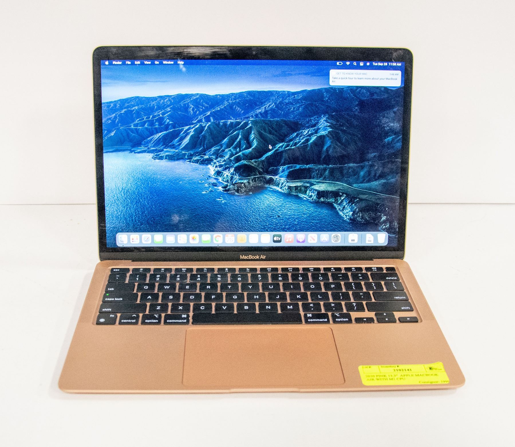 WITH WARRANTY TILL JAN 2022 2020 ROSE GOLD 13.3" APPLE MACBOOK AIR WITH LASTEST OSX WEIGHT 1.29 KG SCREEN SIZE 13.3"SCREEN RESOLUTION 2560x1600 (RETINA) CPU MODEL APPLE M1 RAM: 8 GB SSD: 256 GB NOT NEW IN THE BOX MAY HAVE MINOR SCRATCHES ORDINGS. **ALL BAILIFF SEIZURES ARE SOLD AS IS AND ARE A FINAL SALE**