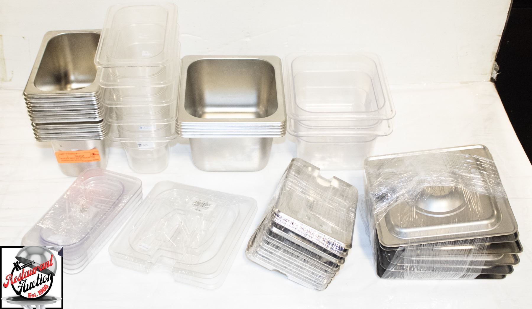 5 - STAINLESS STEEL 1/6TH INSERTS, 2 - POLYCARBONATE 1/6TH INSERTS, 11 - STAINLESS STEEL 1/9TH INSERTS, 5 - POLYCARBONATE 1/9TH INSERTS, 10 - 1/9TH STAINSTEEL COVERS, 8 - 1/6TH STAINLESS STEEL COVERS, 4 - 1/9TH POLY CARBONATE COVERS, 2 - 1/6TH POLYCARBONATE COVERS** ALL BAILIFF ITEMS ARE SOLD AS IS ABSOLUTLY NO REFUNDS OR RECONSIGNMENT **