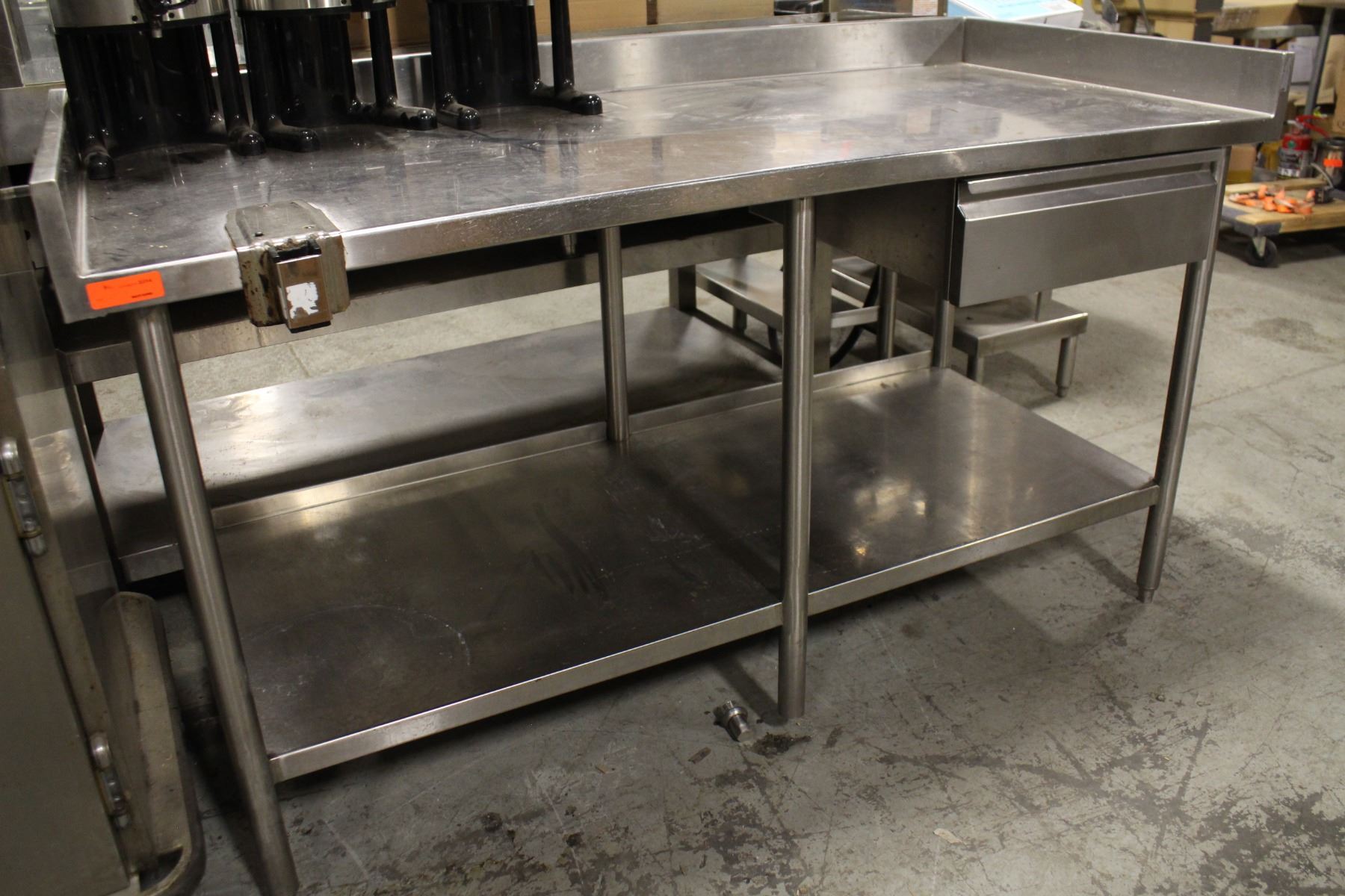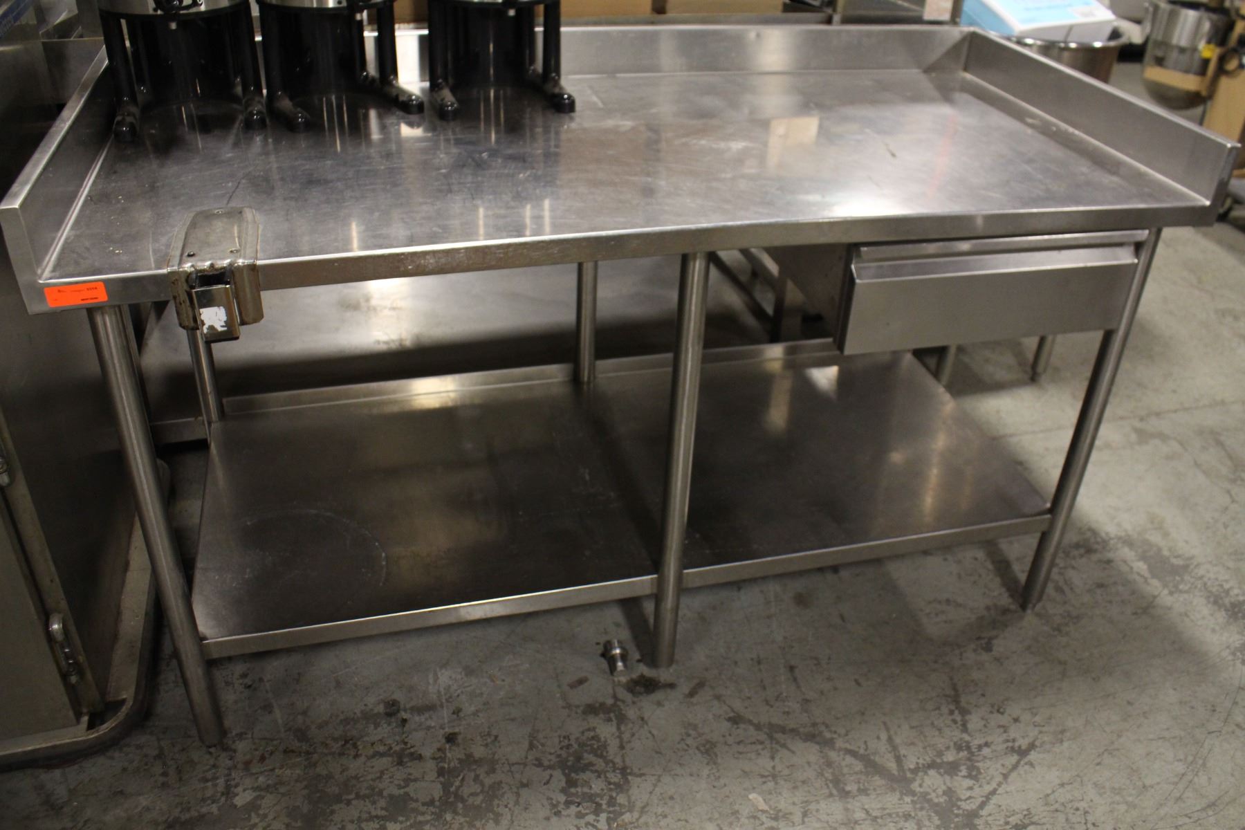UNDERSHELF AND SIDE/BACK SPLASHES. WORKTABLE: 66''X30''X35'' SIDE/BACK SPLASHES: 3.5'' INCLUDES CANOPENER MOUNT **ALL ITEMS MUST BE REMOVED BY 5PM MONDAY, JULY 3RD, 2023. ALL REMAINING ITEMS WILL BE SUBJECT TO A $6.00 PER DAY STORAGE CHARGE. ANY ITEMS REMAINING AFTER MONDAY, JULY 17TH, 2023 WILL BE CONSIDERED FORFEITED. NO REFUNDS WILL BE ISSUED FOR FORFEITED ITEMS.** TO SCHEDULE A PICK UP APPOINTMENT CLICK HERE