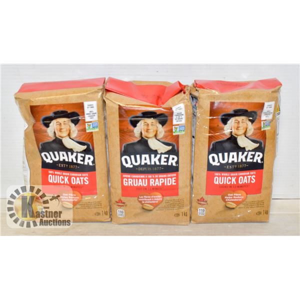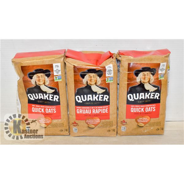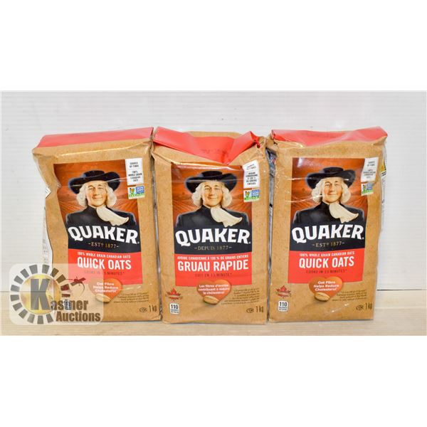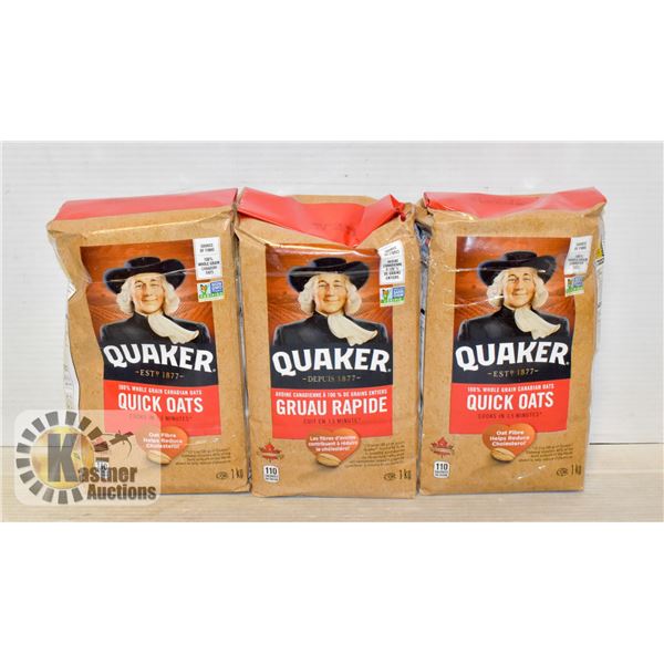 3 BAGS OF QUAKER QUICK OATS COOKS I 1.5 MINUTES