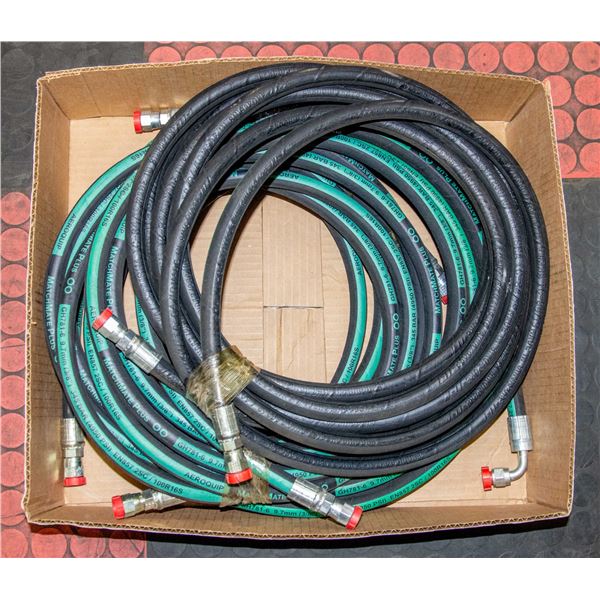 BOX W/ 3/8" 4950 PSI HYDRAULIC HOSES. 5 IN TOTAL.