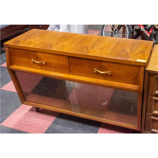 WOOD BUREAU WITH SIDING GLASS DRAWERS