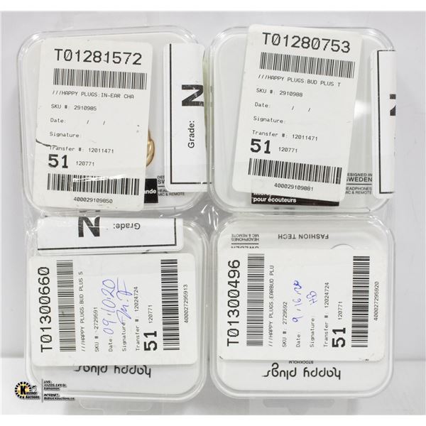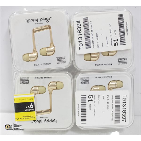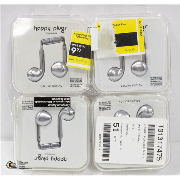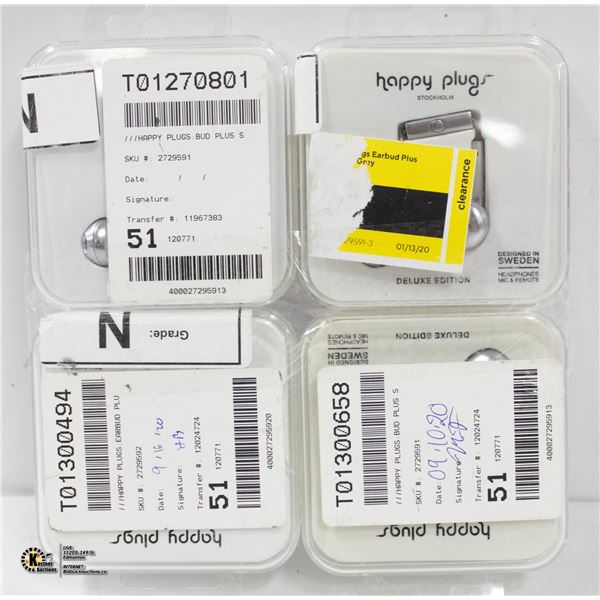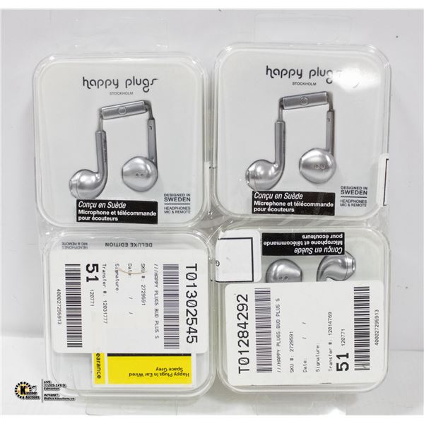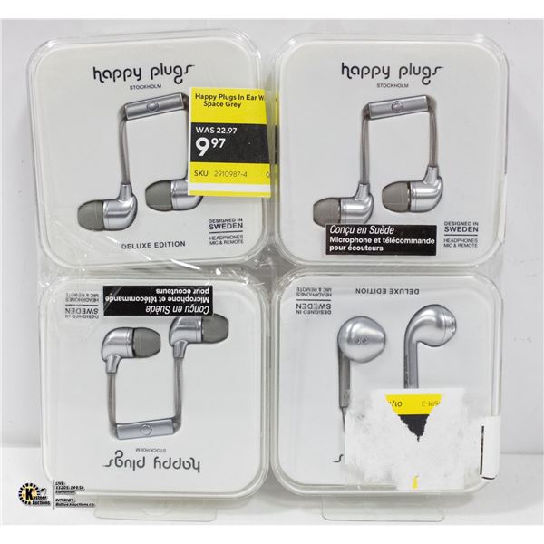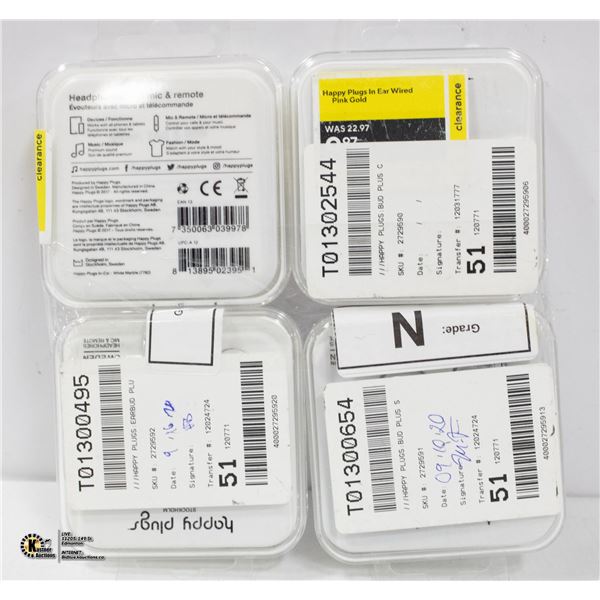 LOT OF 4 NEW HAPPY PLUG HEADPHONES W/MIC