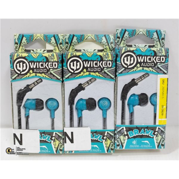 LOT OF 3 NEW WICKED AUDIO BRAWL HEADPHONES
