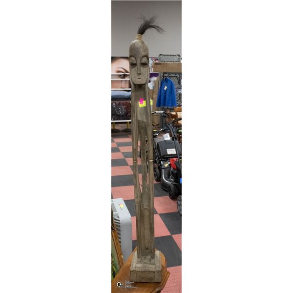 4FT HAND CARVED AFRICAN WOODEN MAN, TUFFS OF HAIR