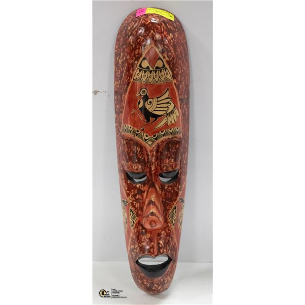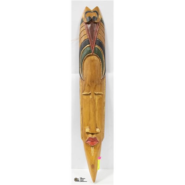 LARGE 40 IN AFRICAN MASK, HAND PAINTED CARVED