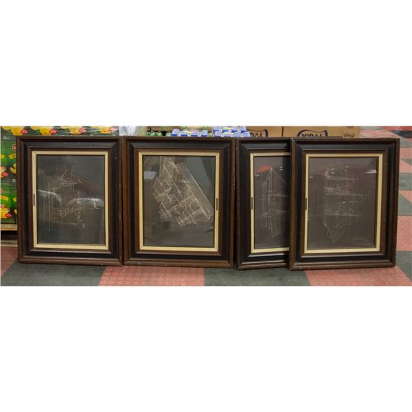 SET OF 4 FRAMED SHIP METALLIC ART