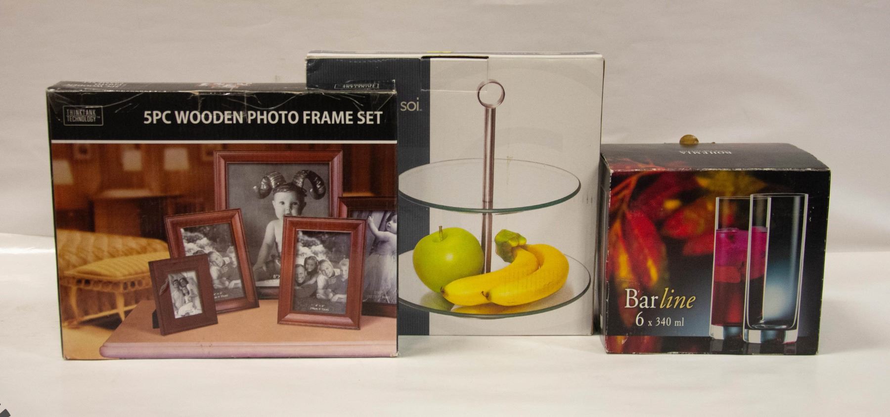 GLASSES & 2 TIER FRUIT BOWL ALL BAILIFF SEIZURE ITEMS ARE SOLD AS IS.
