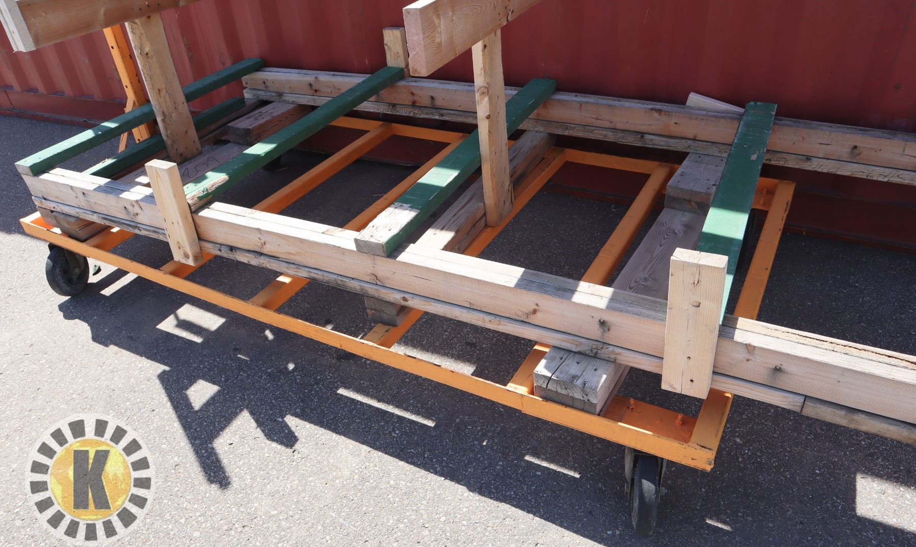 CART WITH CUSTOM BUILT WOOD PLATFORM. METAL FRAME APPROX. 8' LONG X 4' WIDE ON 8" CASTORS***ITEM(S) LOCATED IN LETHBRIDGE ALBERTA. SMALL ITEMS ONLY ARE AVAILABLE FOR FREE TRANSPORT TO EDMONTON (PLEASE READ AUCTION DETAILS FOR MORE INFORMATION). HAZARDOUS MATERIALS ARE NOT SHIPPABLE