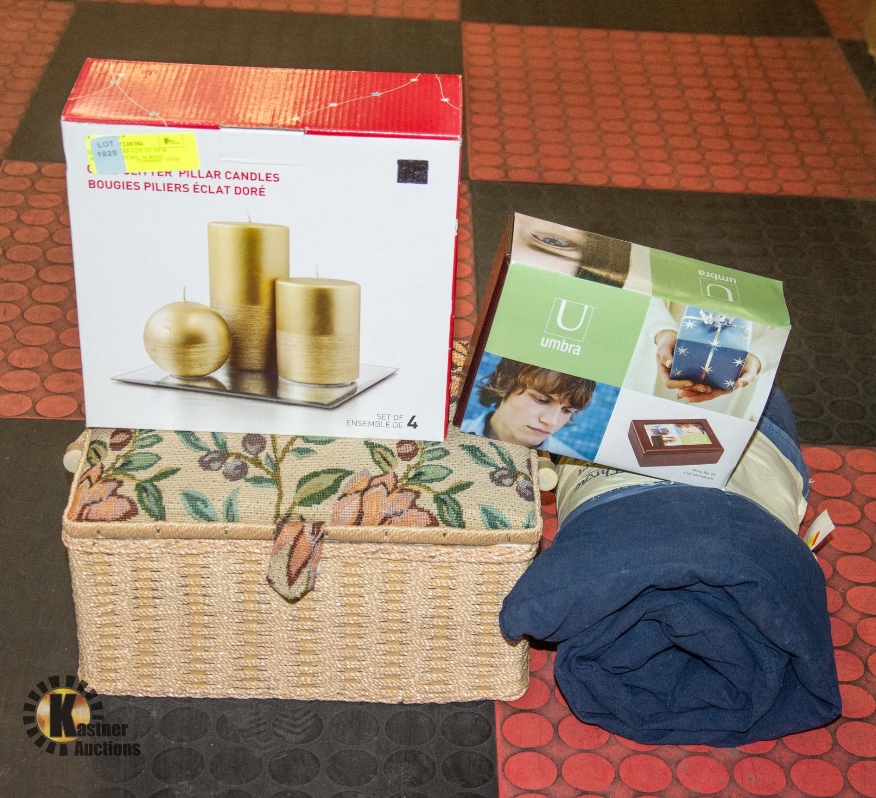 BASKET/ THROW BLANKET/ PICTURE BOX & CANDLE SET. ALL BAILIFF SEIZURE ITEMS ARE SOLD AS IS. **ALL ITEMS MUST BE REMOVED BY 5PM SATURDAY, JANUARY 4TH 2025. ALL REMAINING ITEMS WILL BE SUBJECT TO A $6.00 PER DAY STORAGE CHARGE. ANY ITEMS REMAINING AFTER MONDAY, JANUARY 27TH 2025 WILL BE CONSIDERED FORFEITED. NO REFUNDS WILL BE ISSUED FOR FORFEITED ITEMS. TO SCHEDULE A PICK UP APPOINTMENT CLICK HERE