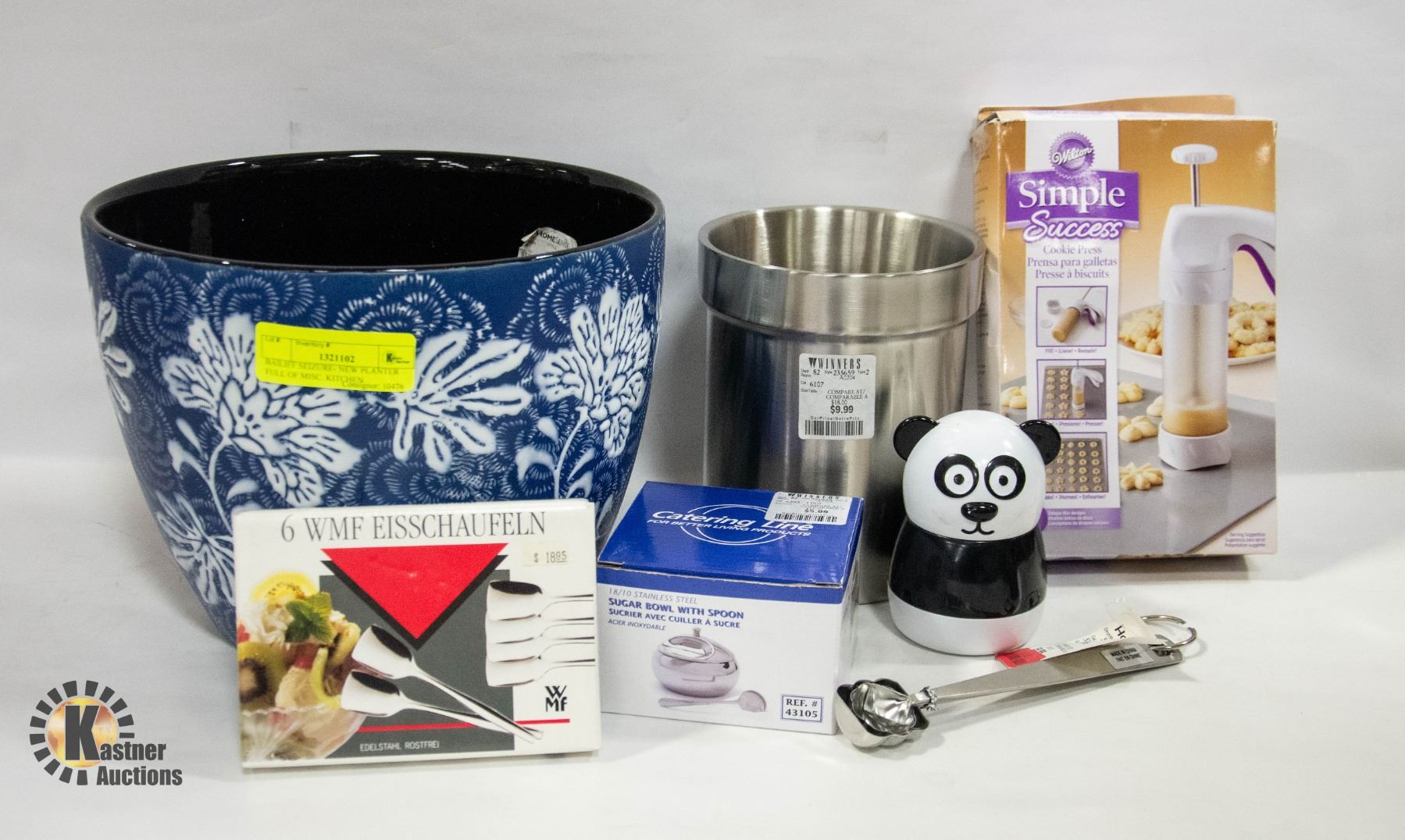 WARES; SUGAR DISH/ COOKIE PRESS/ PANDA CUPS, ETC