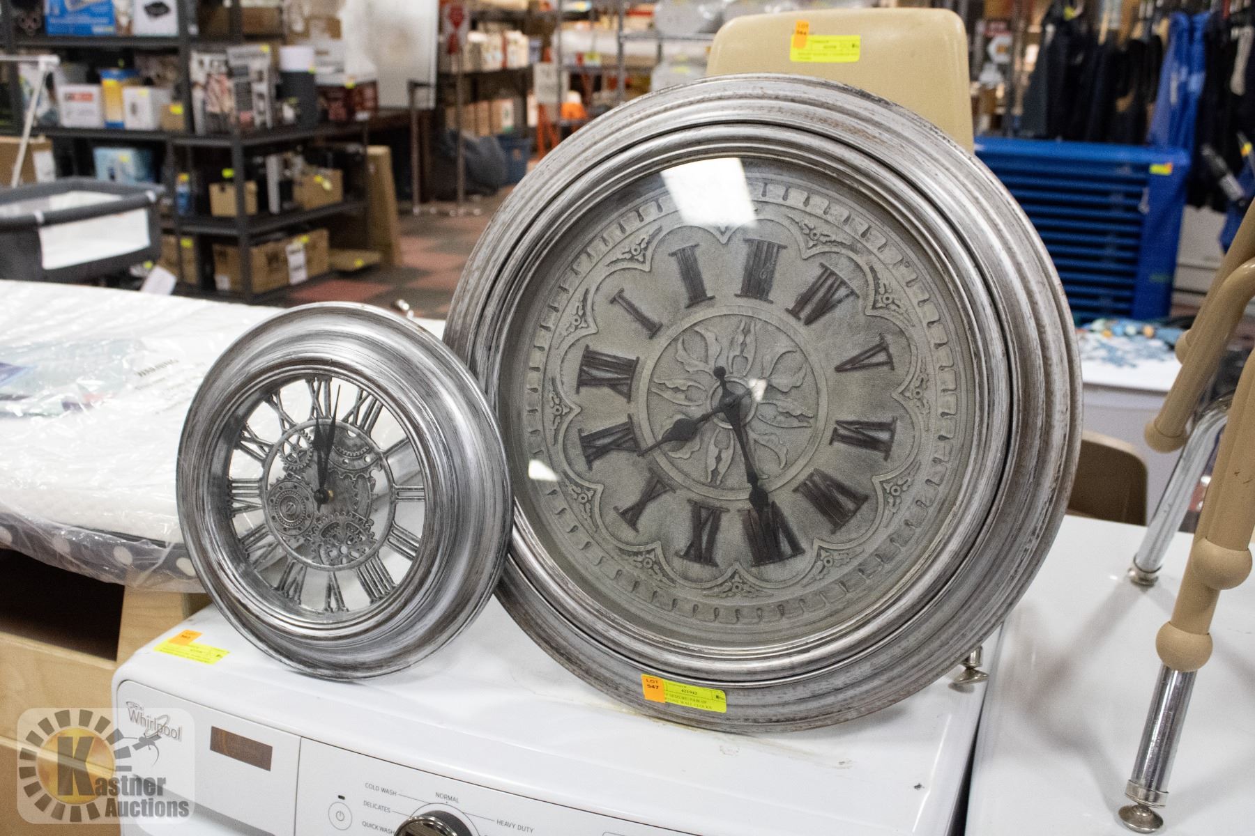 BAILIFF SEIZURE: PAIR OF SILVERTONE WALL CLOCKS