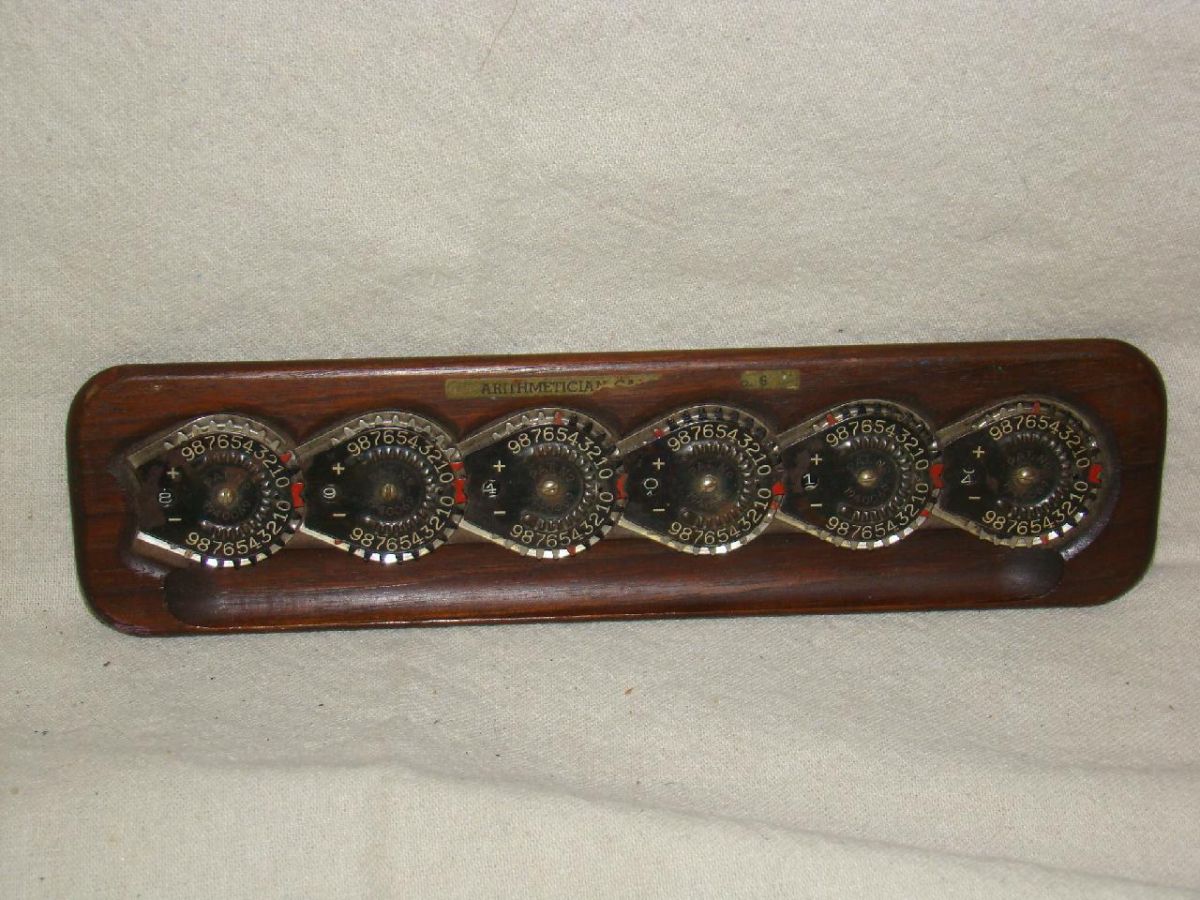 rare and early metal and wood computer with six discs and no mechanical carry.10"