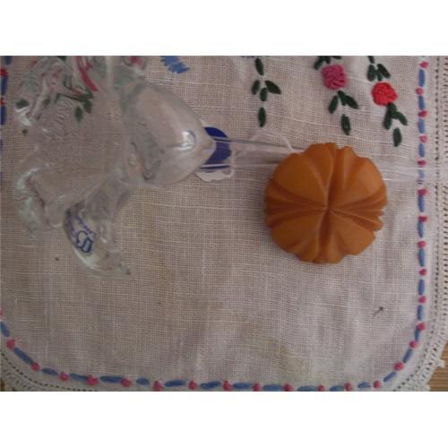 THIS IS A HUGE BUTTERSCOTCH BAKELITE BROACH WITH A FUR CLIP BACK. THIS DESIGNATES THE VINTAGE AGE OF THE BROACH. IT IS PRISTINE AND HAS BEEN BAKELITE TESTED. JUST AN AMAZING AND RARE ITEM.