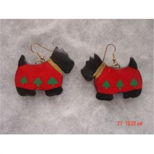 <tr><td>Title:BAKELITE CELLULOID SCOTTIE Dog Earrings Pierced</td></tr>