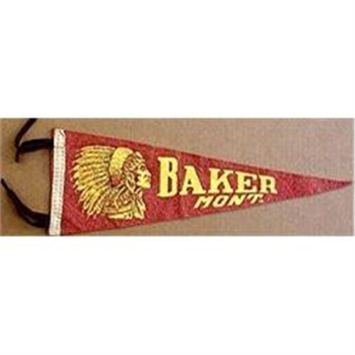 BAKER OREGON FELT PENNANT -- 1940-1950, 6? x 17?, pictures Indian Chief with full headdress