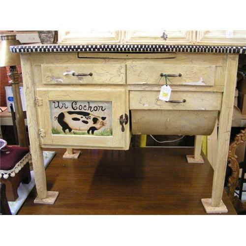 <tr><td>Title:BAKERS TABLE/ RUSTIC BAKERS CABINET METAL TOP</td></tr>