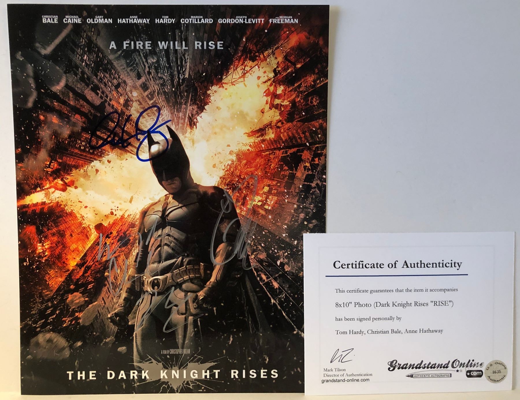 BALE, HARDY & HATHAWAY SIGNED 8X10 PHOTO 'BATMAN DARK KNIGHT RISES' COA