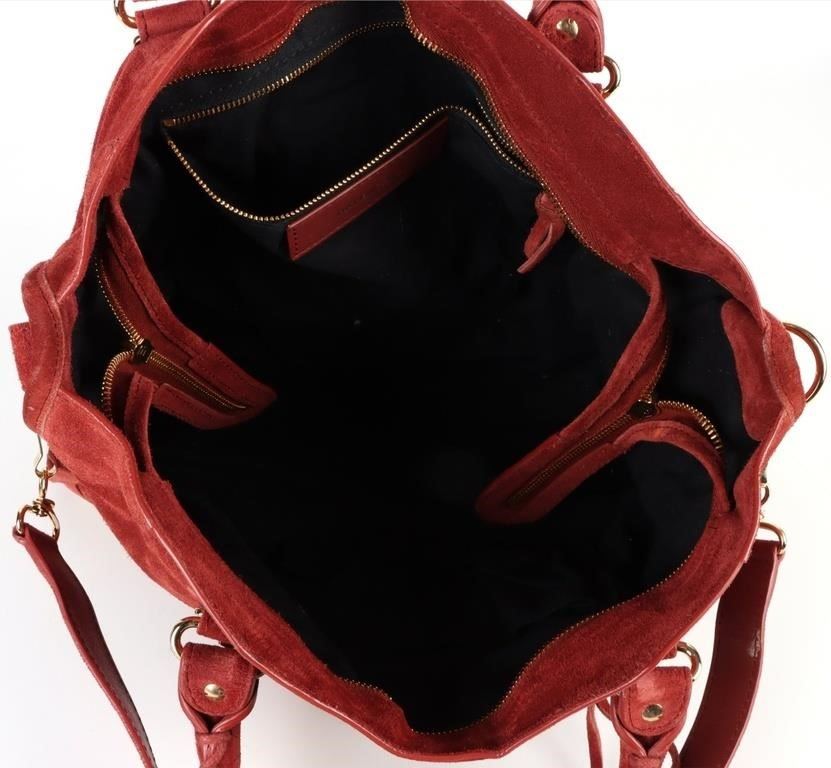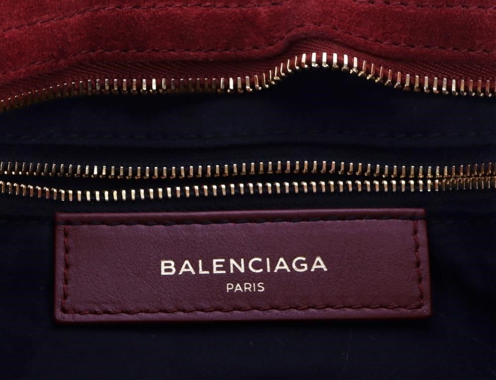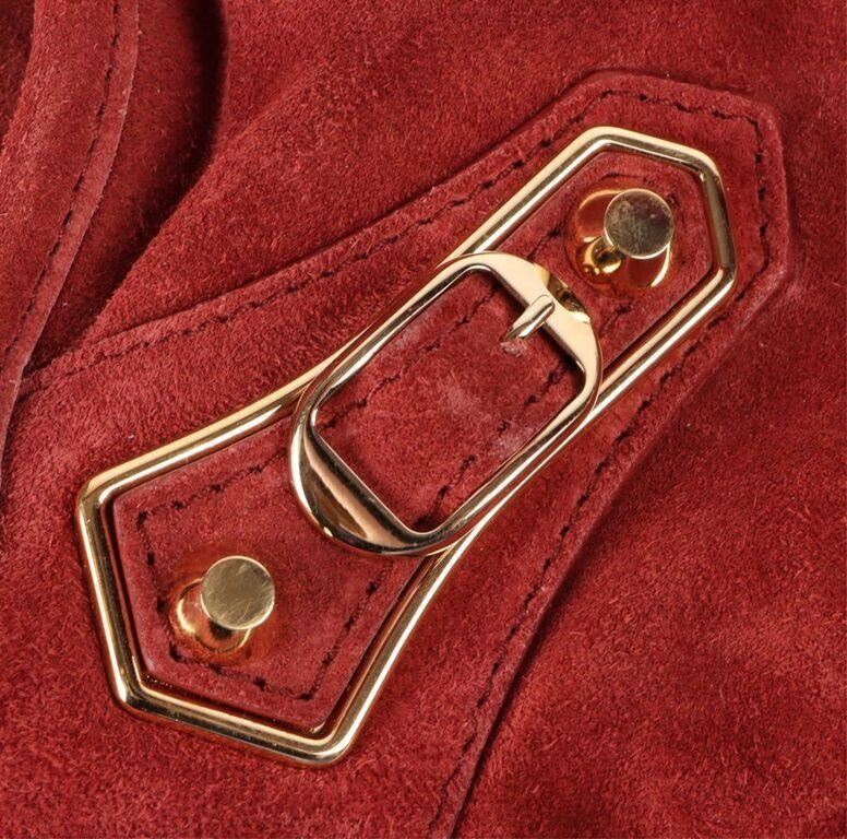 Balenciaga suede ladies city bag with gold-toned hardware.