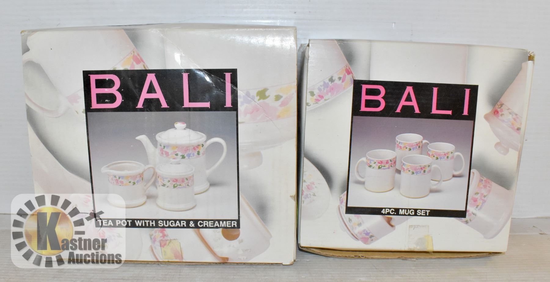 BALI TEASET, NEW IN BOX INCLUDES 4 CUPS, TEAPOT CR