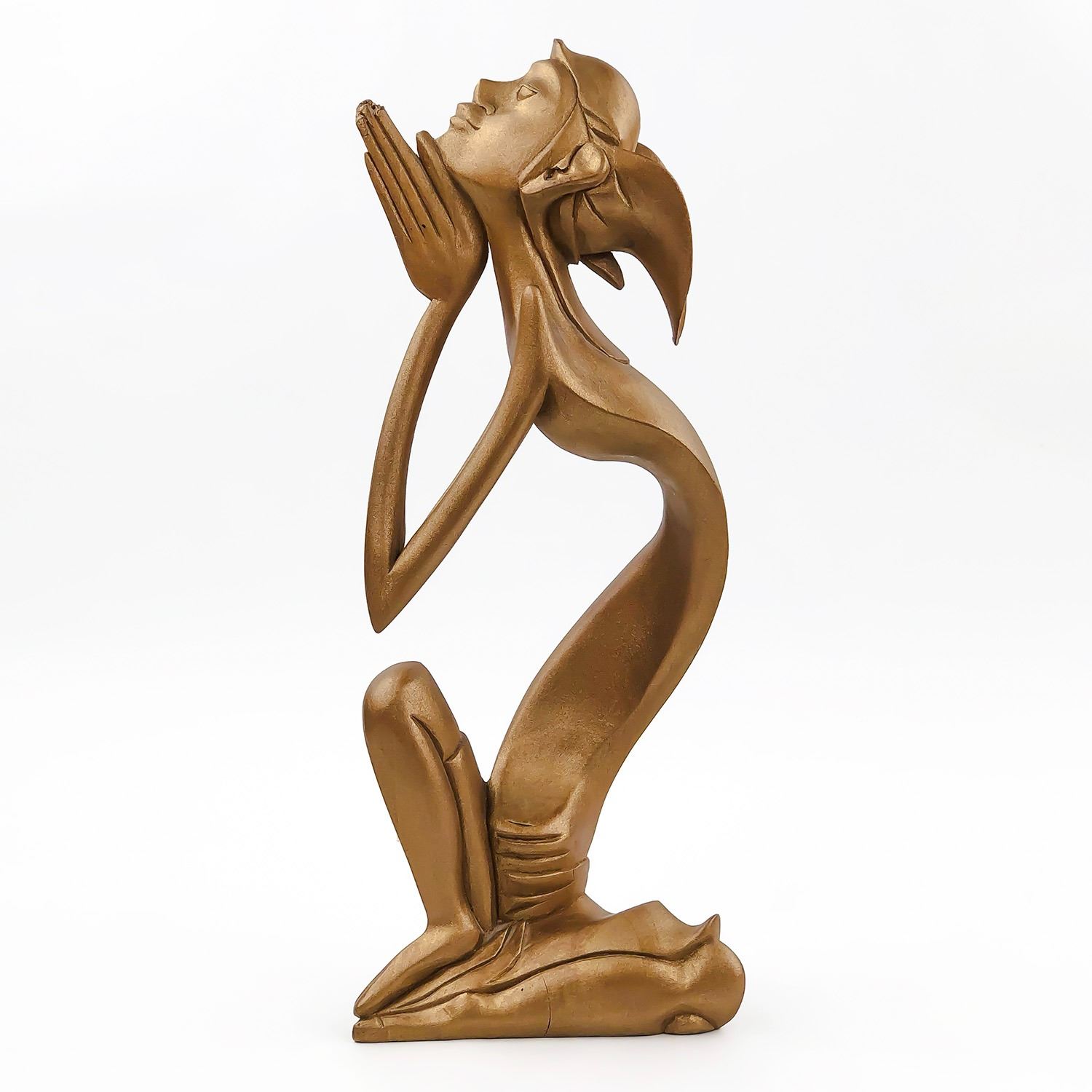#9363 - STYLISH BALINESE FOLK ART TYPE ART SCULPTURE - PRAYING FIGURE. LIGHT WOOD PAINTED A GOLD COLOR, MEASURES 12.25” (31 CM) TALL, 4.75” (12 CM) WIDE, 2.25” (6 CM) DEEP***ITEM(S) LOCATED IN LETHBRIDGE ALBERTA. ALL ITEMS IN THIS AUCTION QUALIFY FOR OUR FREE TRANSPORT TO EDMONTON SERVICE. WORLDWIDE SHIPPING AVAILABLE