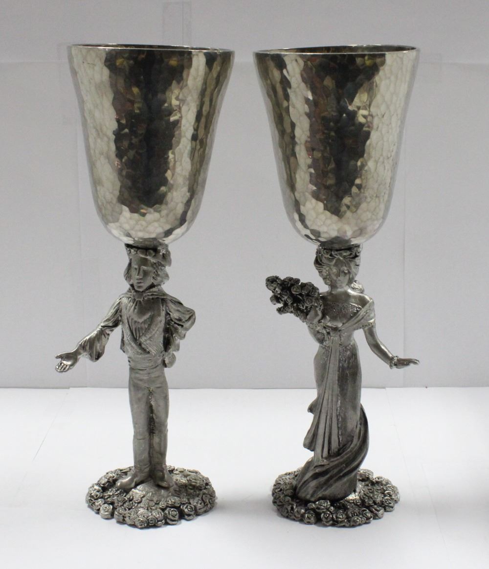 TOASTING GLASSES. SOLID HEAVY WITH MAKERS MARKS 9-1/2" TALL