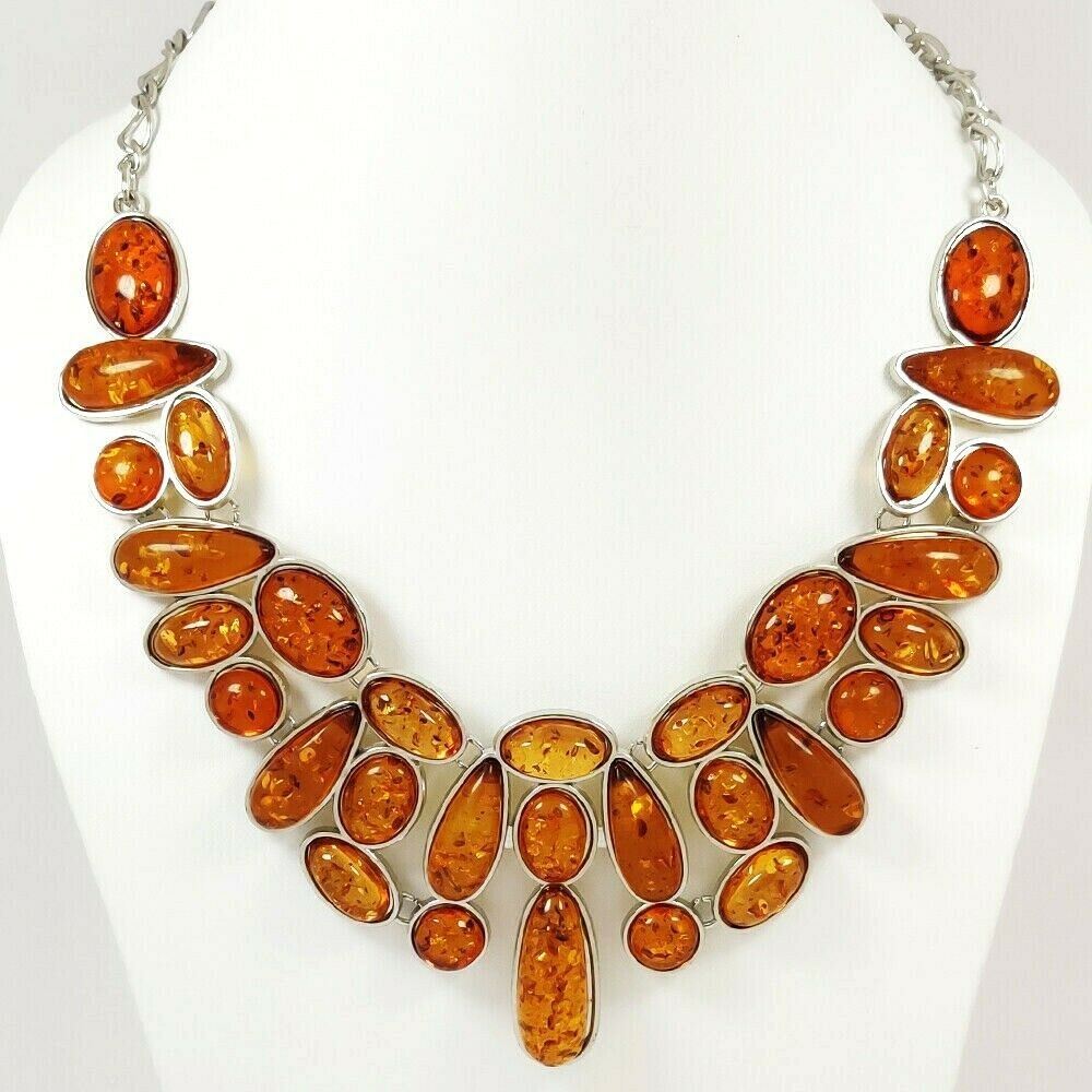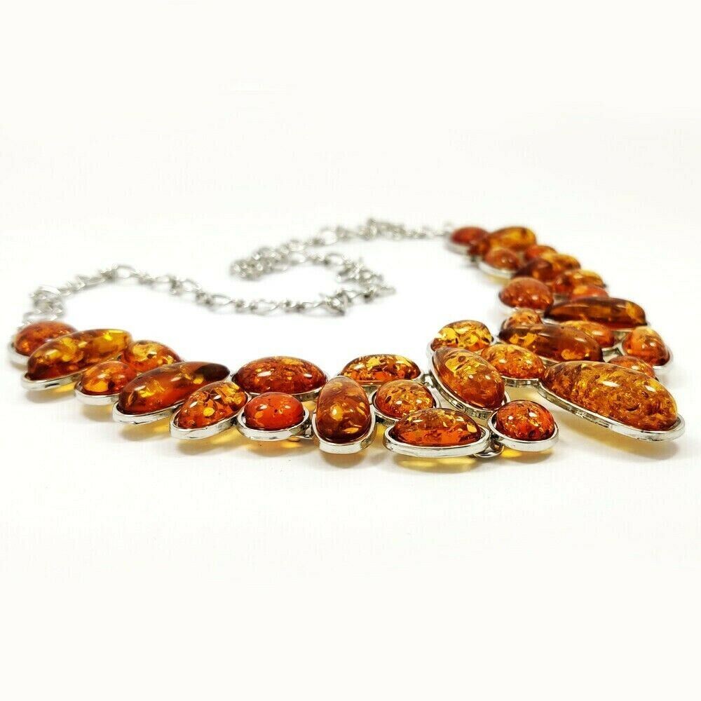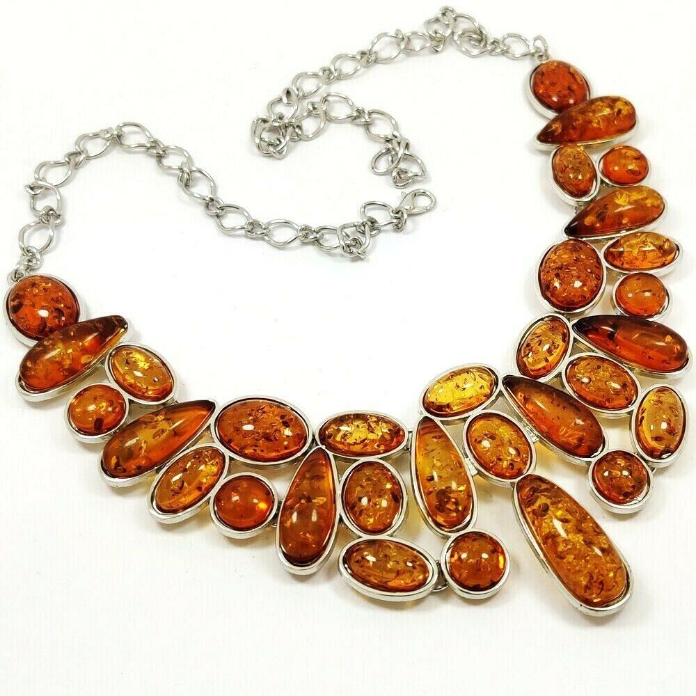 BALTIC AMBER GEMSTONE SILVER PLATED BLUE NECKLACE , Gemstone : Baltic Amber Lazuli , Necklace Size : 20 Inches (With adjustable links) , Metal Purity : Silver Plated , Base Metal : White Brass Necklace Weight : 65.200 Gram