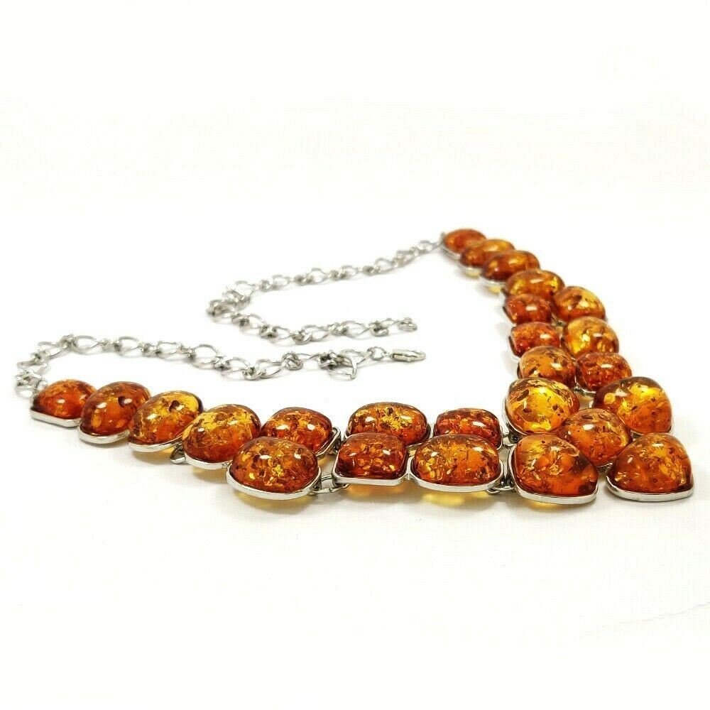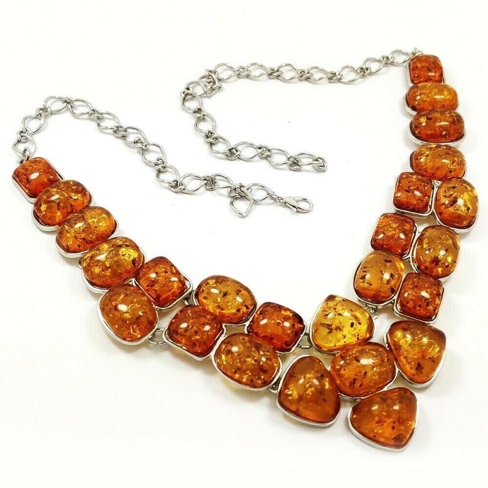 BALTIC AMBER GEMSTONE SILVER PLATED BLUE NECKLACE , Gemstone : Baltic Amber Lazuli , Necklace Size : 20 Inches (With adjustable links) , Metal Purity : Silver Plated , Base Metal : White Brass Necklace Weight : 75.400 Gram