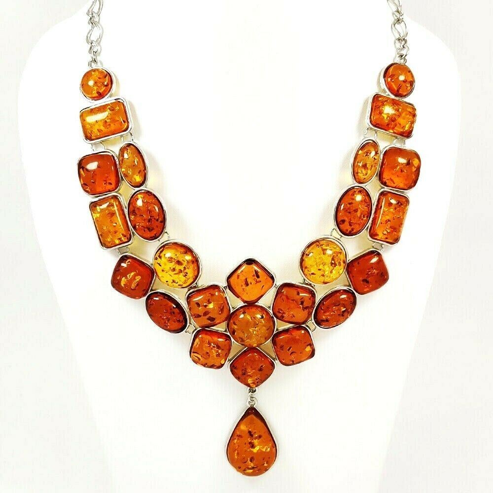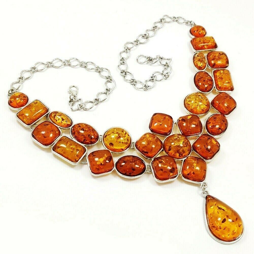 BALTIC AMBER GEMSTONE SILVER PLATED BLUE NECKLACE , Gemstone : Baltic Amber Lazuli , Necklace Size : 20 Inches (With adjustable links) , Metal Purity : Silver Plated , Base Metal : White Brass Necklace Weight : 64.700 Gram