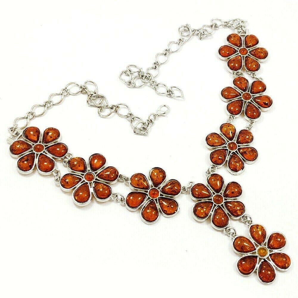 BALTIC AMBER GEMSTONE SILVER PLATED BLUE NECKLACE , Gemstone : Baltic Amber Lazuli , Necklace Size : 20 Inches (With adjustable links) , Metal Purity : Silver Plated , Base Metal : White Brass Necklace Weight : 54.500 Gram