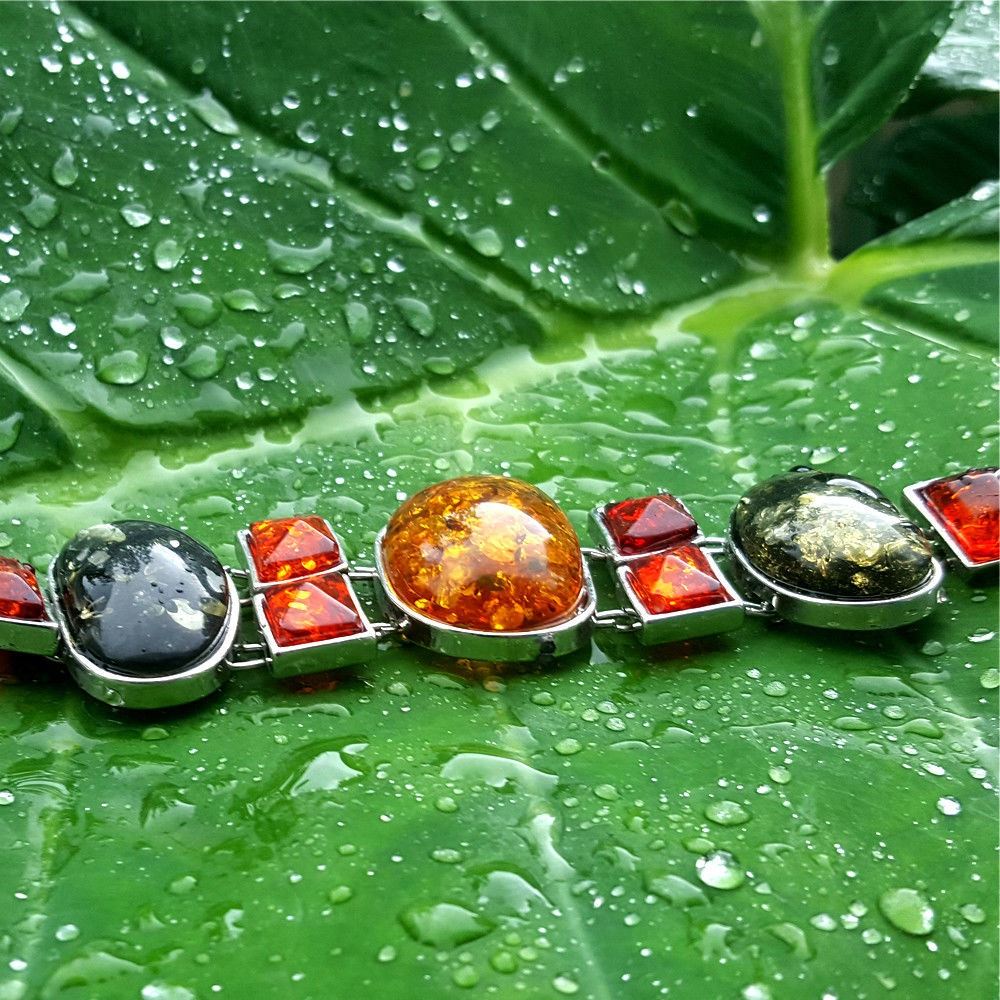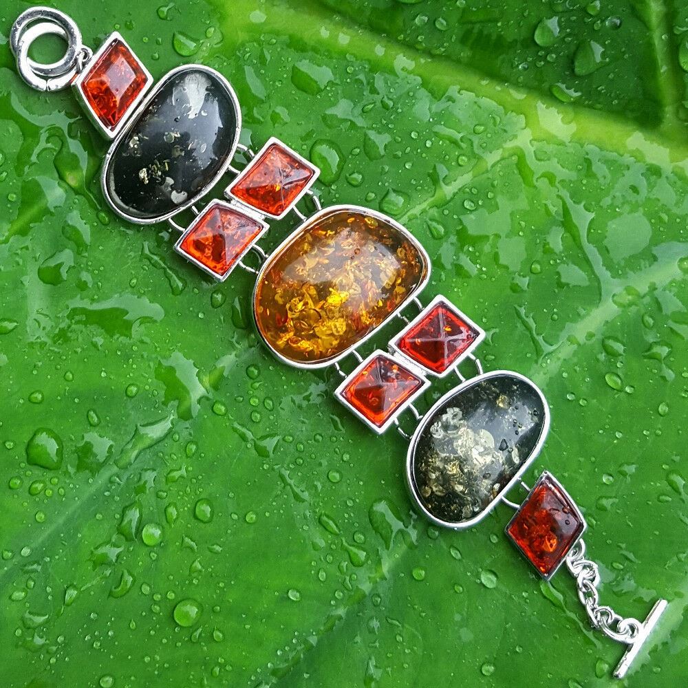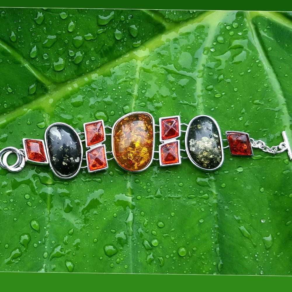 BALTIC AMBER GEMSTONE SILVER PLATED BRACELET , JEWELRY TYPE : BRACELET , BRACELET LENGTH : 8 INCHES (WITH ADJUSTABLE LINKS) , BRACELET WEIGHT : 47.20 Grams