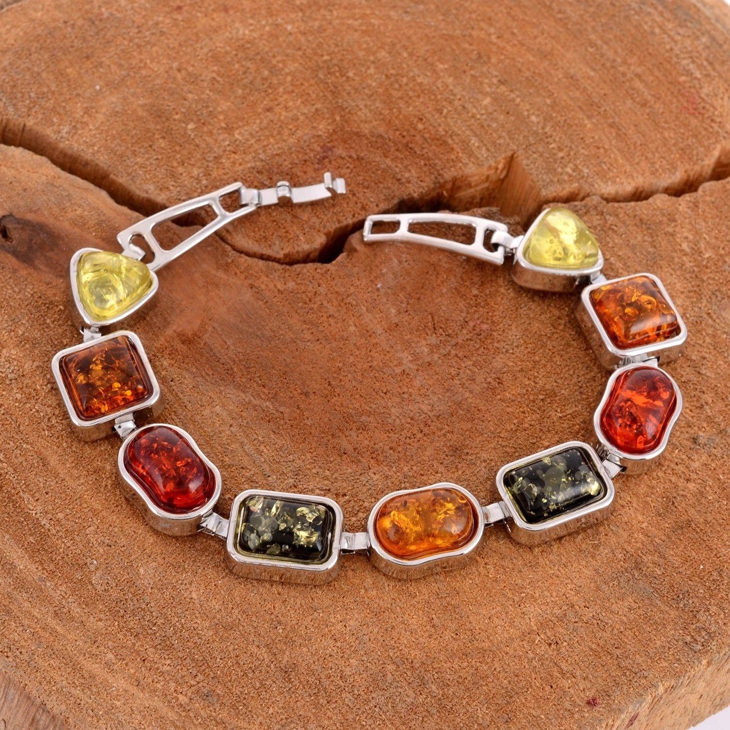 BALTIC AMBER GEMSTONE SILVER PLATED BRACELET , JEWELRY TYPE : BRACELET , BRACELET LENGTH : 8 INCHES (WITH ADJUSTABLE LINKS) , BRACELET WEIGHT : 24.20 Grams