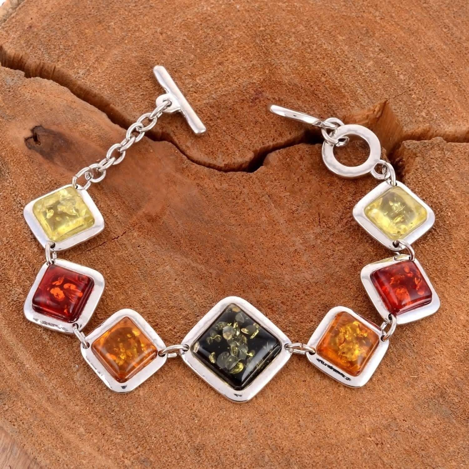 BALTIC AMBER GEMSTONE SILVER PLATED BRACELET , JEWELRY TYPE : BRACELET , BRACELET LENGTH : 8 INCHES (WITH ADJUSTABLE LINKS) , BRACELET WEIGHT : 21.20 Grams