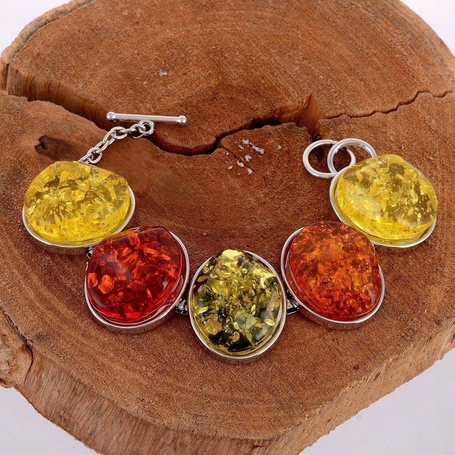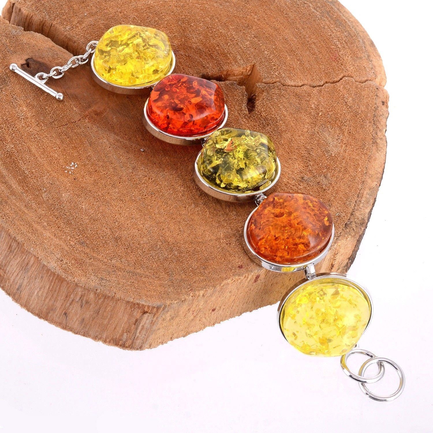BALTIC AMBER GEMSTONE SILVER PLATED BRACELET , JEWELRY TYPE : BRACELET , BRACELET LENGTH : 8 INCHES (WITH ADJUSTABLE LINKS) , BRACELET WEIGHT : 52.30 Grams