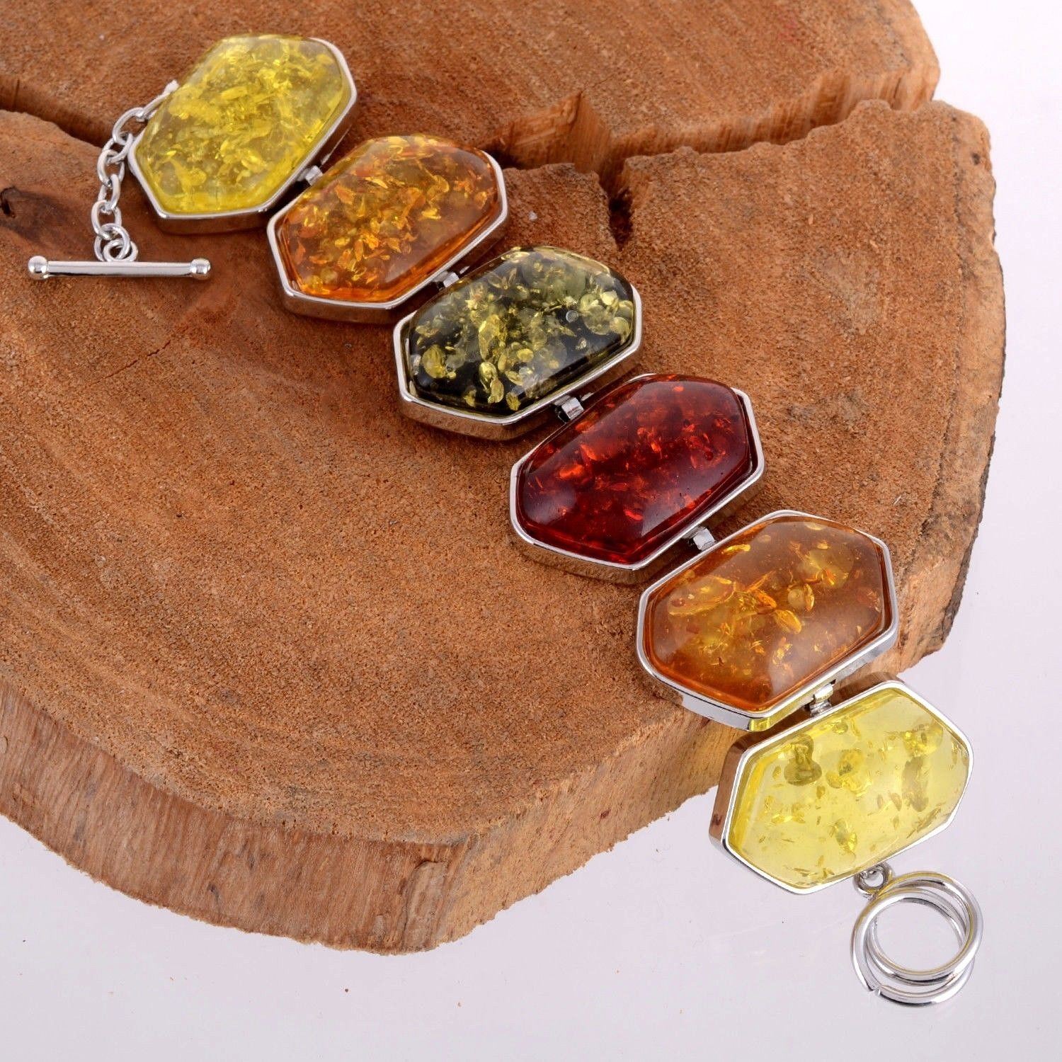 BALTIC AMBER GEMSTONE SILVER PLATED BRACELET , JEWELRY TYPE : BRACELET , BRACELET LENGTH : 8 INCHES (WITH ADJUSTABLE LINKS) , BRACELET WEIGHT : 48.90 Grams