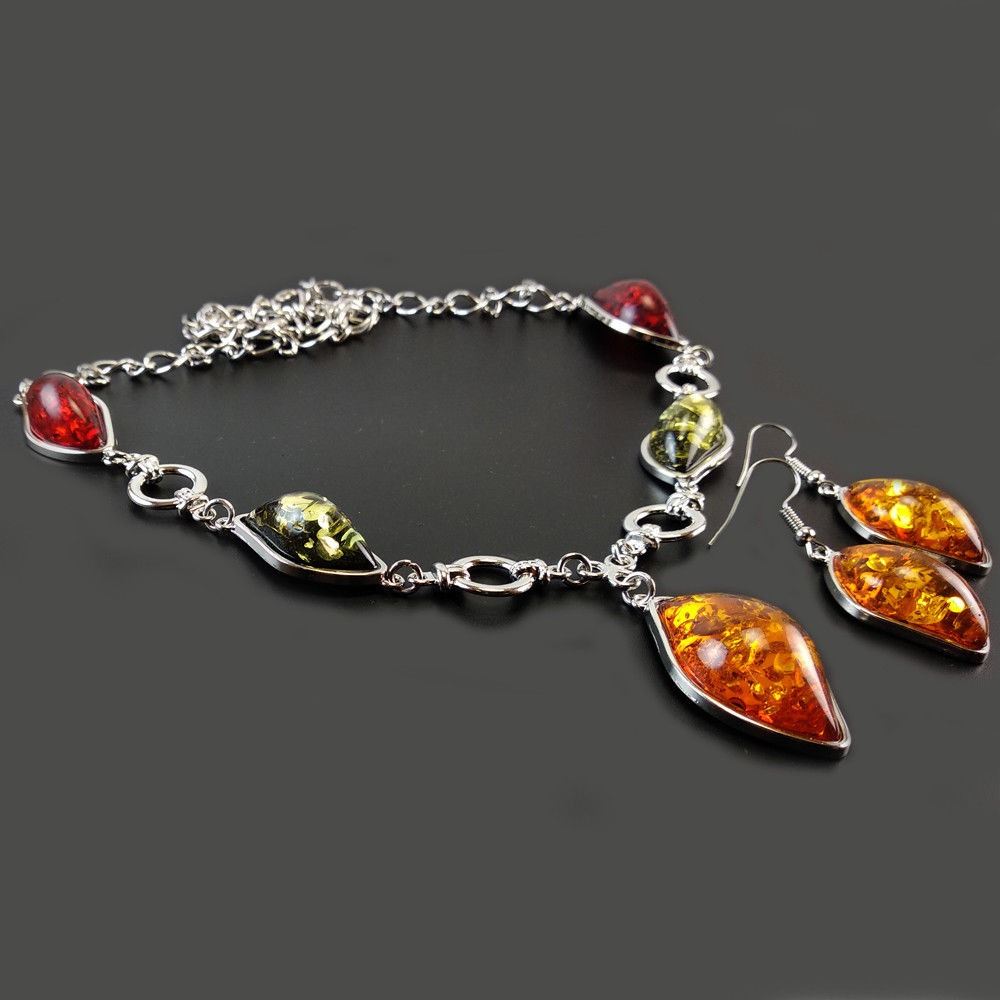 BALTIC AMBER GEMSTONE SILVER PLATED HANDMADE NECKLACE WITH EARRING , Gemstone : Baltic Amber , Necklace Size : 18 Inches (With adjustable links) , Necklace Weight : 42.100 Gram