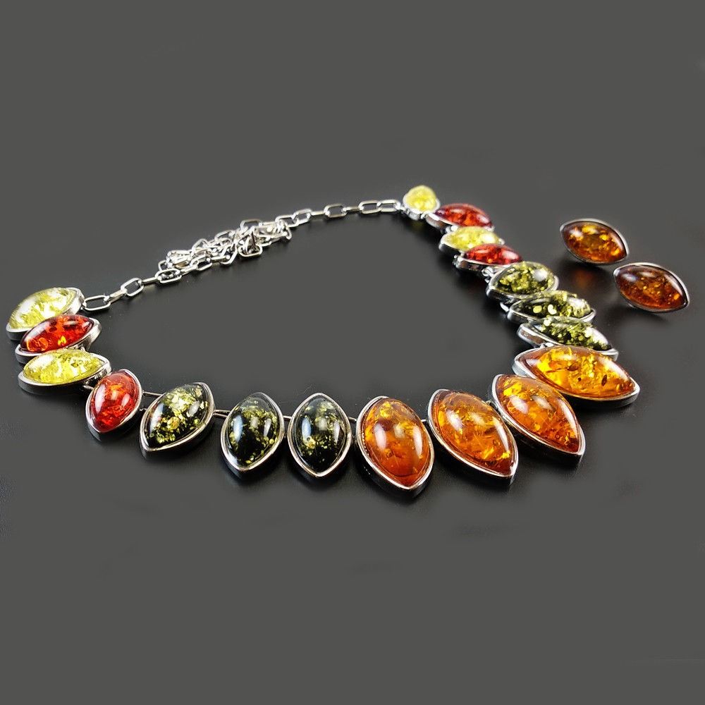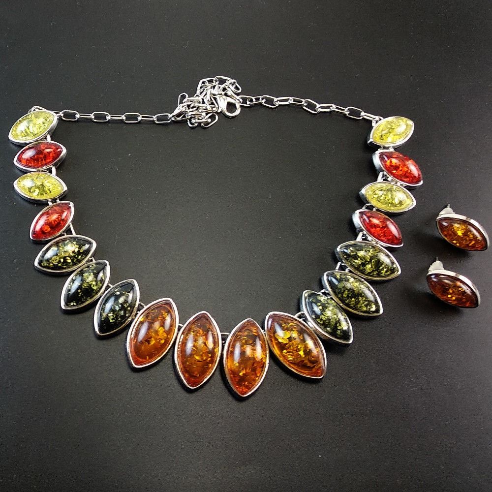 BALTIC AMBER GEMSTONE SILVER PLATED HANDMADE NECKLACE WITH EARRING , Gemstone : Baltic Amber , Necklace Size : 18 Inches (With adjustable links) , Necklace Weight : 47.800 Gram