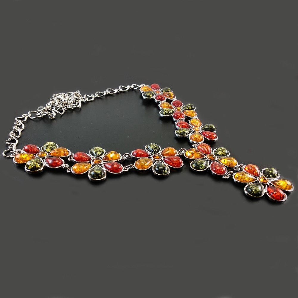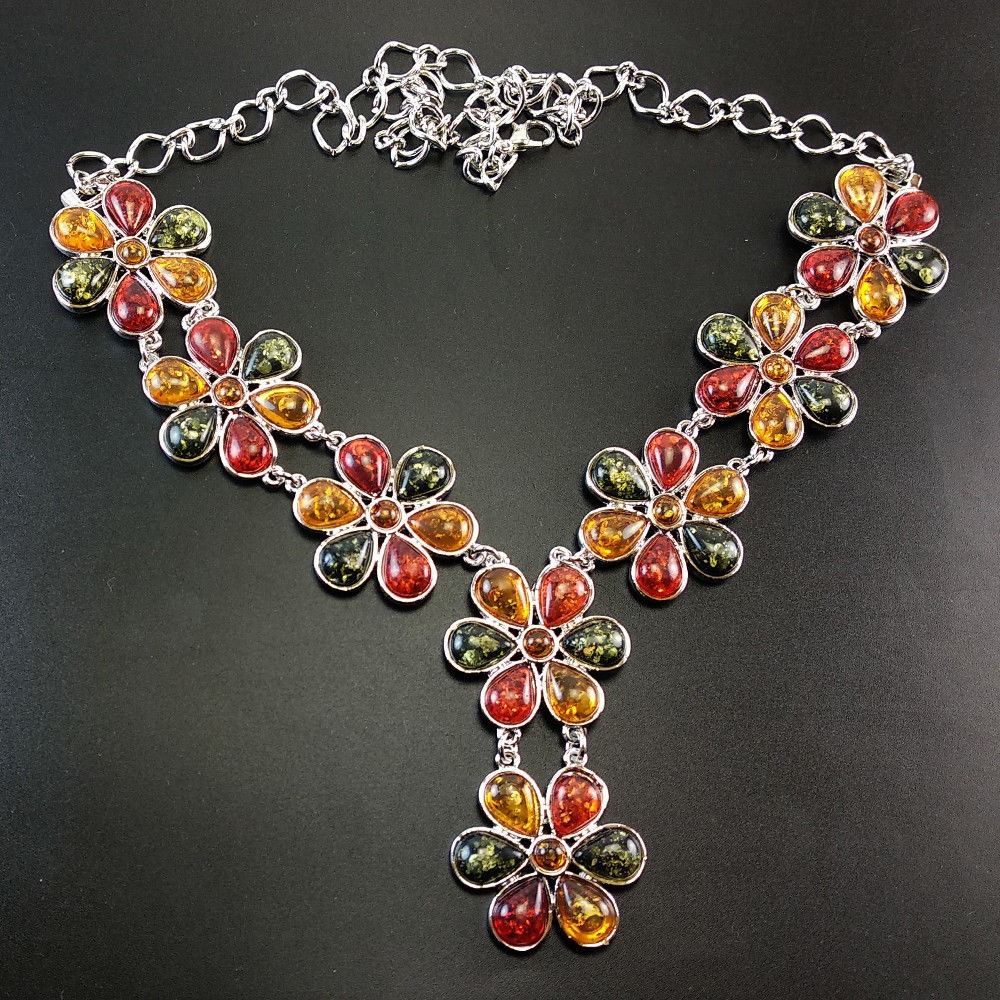 BALTIC AMBER GEMSTONE SILVER PLATED HANDMADE NECKLACE , Gemstone : Baltic Amber , Necklace Size : 18 Inches (With adjustable links) , Necklace Weight : 61.700 Gram